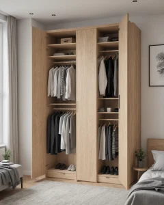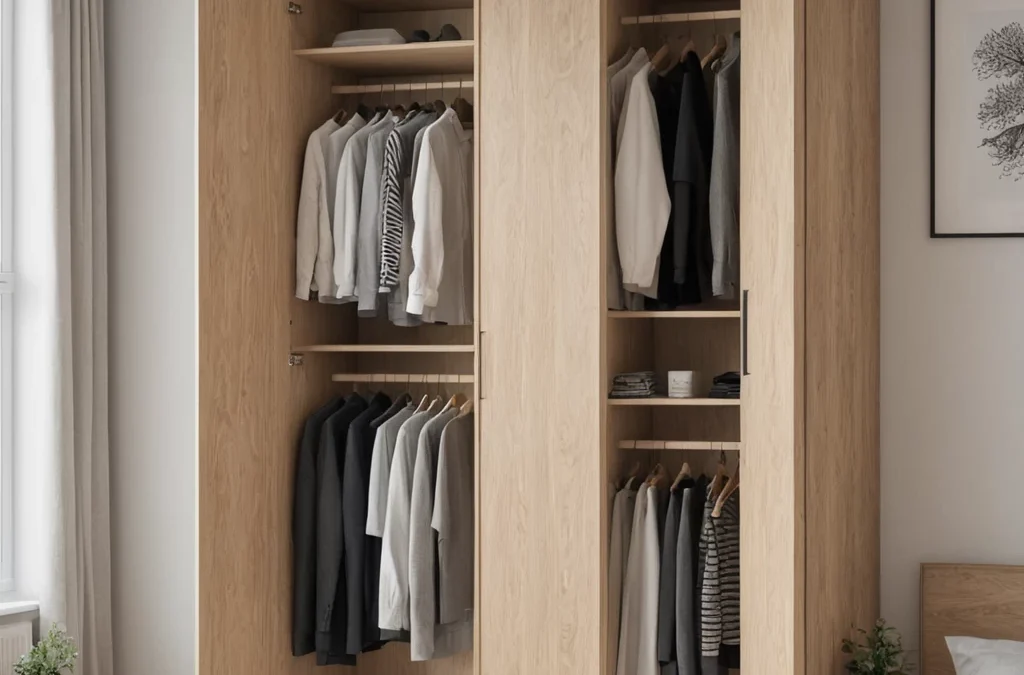 photorealistic, custom built in wardrobe in a small apartment, maximizing every inch of vertical space, clever storage solutions №36 — mebeltops.com