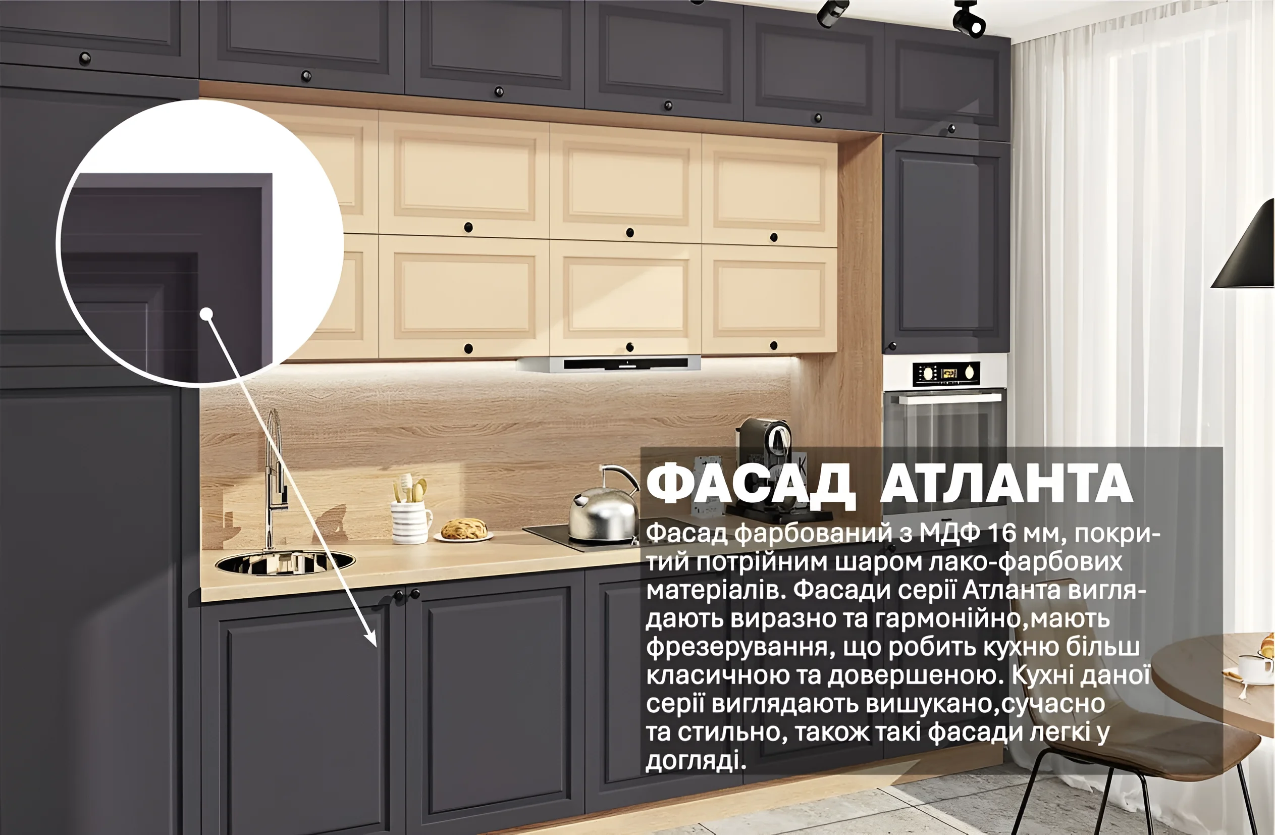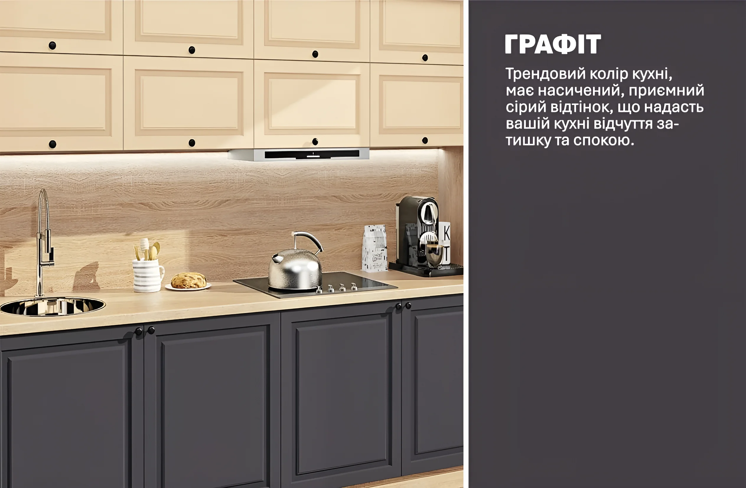 **Kaufen Sie die Küche „Atlanta“ 3,6m lackiertes MDF Graphit, Creme in der Ukraine auf der Website MebelTops.com.**