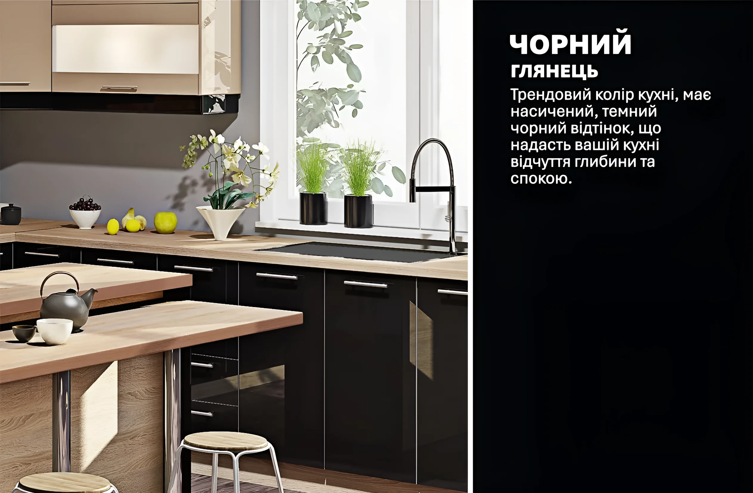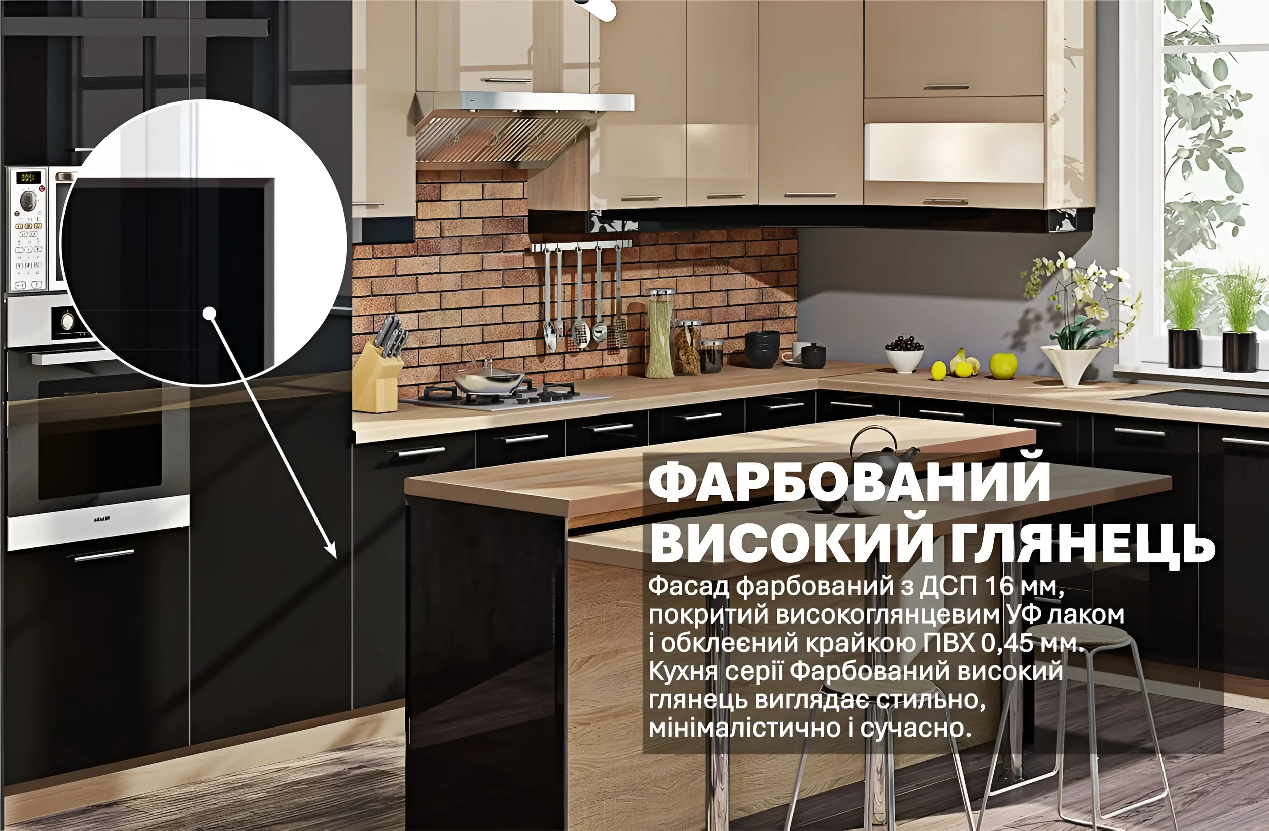 Kaufen Sie die Küche „Lack Hochglanz“ 4,05×3,05m Cappuccino, Schwarz in der Ukraine auf der Website MebelTops.com.