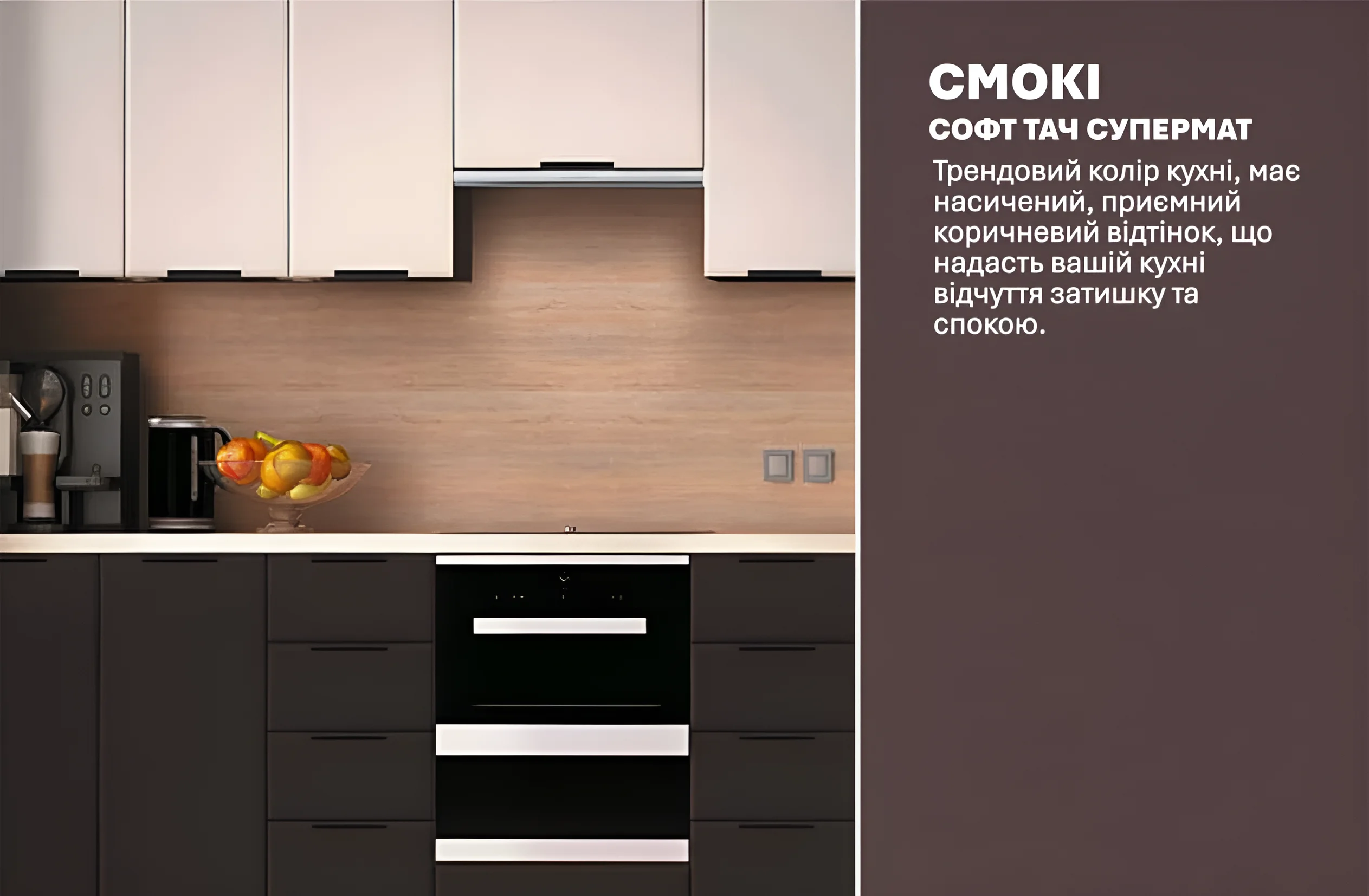 Die vorgestellte Küche gehört zur Serie „High-Tech Soft Touch Supermatt“. Dies ist nicht nur ein Name, sondern eine Designphilosophie, die die neuesten Trends in der Möbelindustrie vereint. Die supermatte Oberfläche der Fronten verleiht der Küche eine besondere Tiefe und Eleganz, vermeidet unerwünschte Reflexionen und Glanz. Die Farbkombination in Weiß und Smoky-Tönen unterstreicht den modernen Charakter der Garnitur. Weiß verleiht Leichtigkeit, vergrößert den Raum optisch und schafft ein Gefühl von Frische, während Smoky (rauchiges Grau) Tiefe, Solidität und einen stilvollen Kontrast hinzufügt. Diese Kombination ist universell und lässt sich leicht in verschiedene Einrichtungsstile integrieren, vom skandinavischen Minimalismus bis zum industriellen Loft.