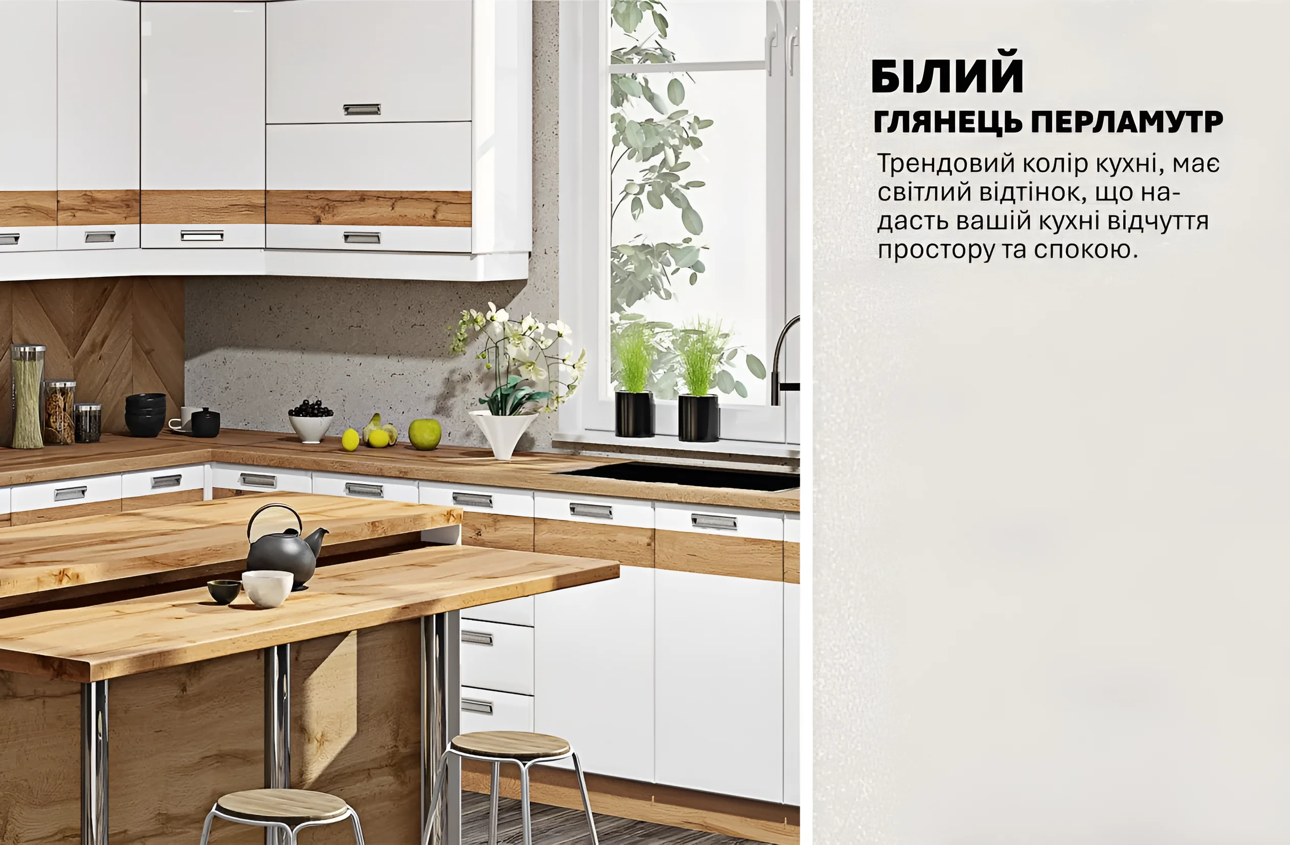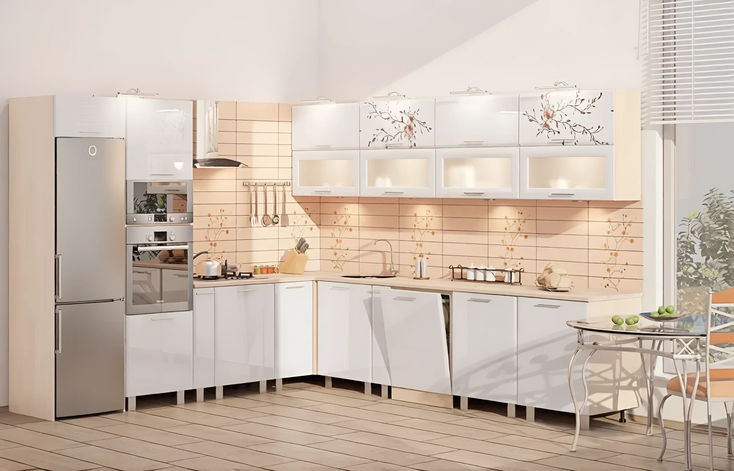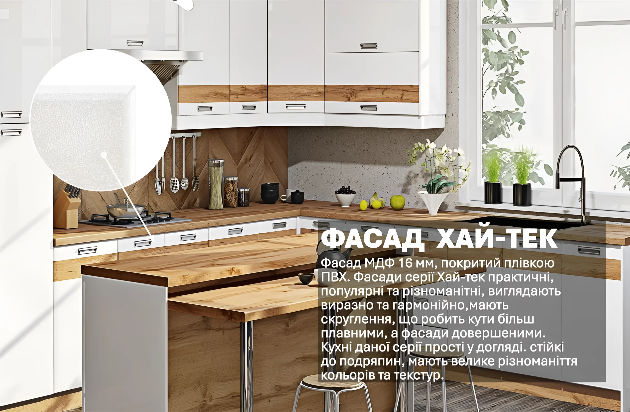 Kaufen Sie die Küche mit Fenster „High-Tech mit Farbdruck“ 4,05 x 3m Weiß in der Ukraine auf der Website MebelTops.com.