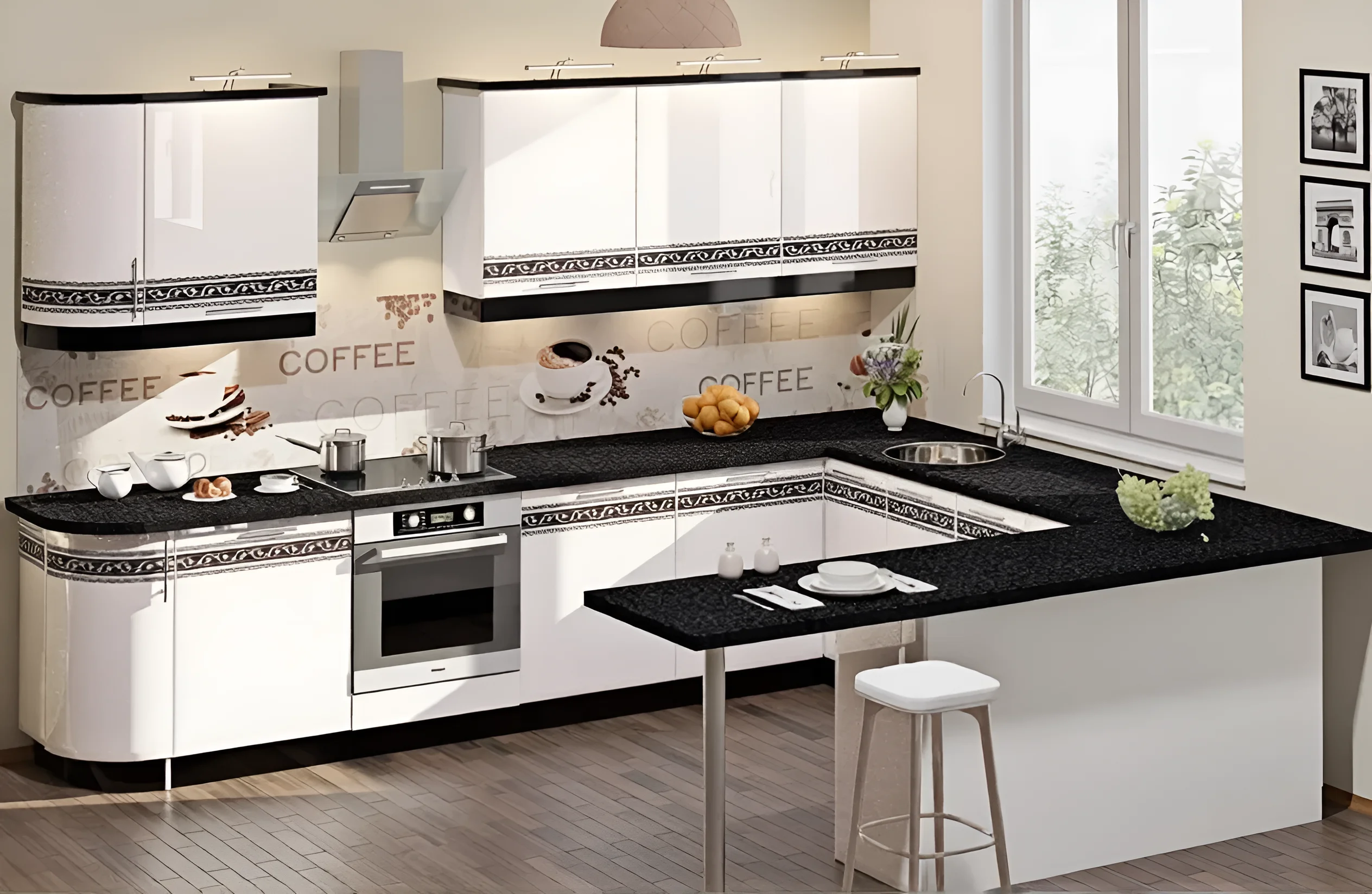 Die Serie „High-Tech Glanz“ und „High-Tech mit Farbdruck“ verkörpert die aktuellsten Trends im Innendesign. Die reine weiße Farbe der Fronten verleiht der Küche eine besondere Leichtigkeit, Eleganz und erweitert den Raum optisch, was besonders für moderne Wohnungen und Häuser relevant ist. Die glänzende Oberfläche der Fronten aus hochwertigem MDF mit PVC-Folie reflektiert nicht nur das Licht hervorragend und erfüllt den Raum mit Luft und Frische, sondern erzeugt auch ein Gefühl von makelloser Sauberkeit und Neuheit. Der eindrucksvolle Farbdruck verleiht Originalität und ermöglicht die Integration einzigartiger künstlerischer Akzente, die die Individualität Ihres Zuhauses unterstreichen und das Interieur wirklich exklusiv machen. Das durchdachte Design des Sets berücksichtigt perfekt das Vorhandensein einer Fensteröffnung, was die Küche hell und luftig macht und nicht nur Komfort, sondern auch ästhetisches Vergnügen in jedem Moment, der hier verbracht wird, bietet. Minimalistische Griffe oder deren vollständiges Fehlen verstärken den Effekt des modernen Designs.
