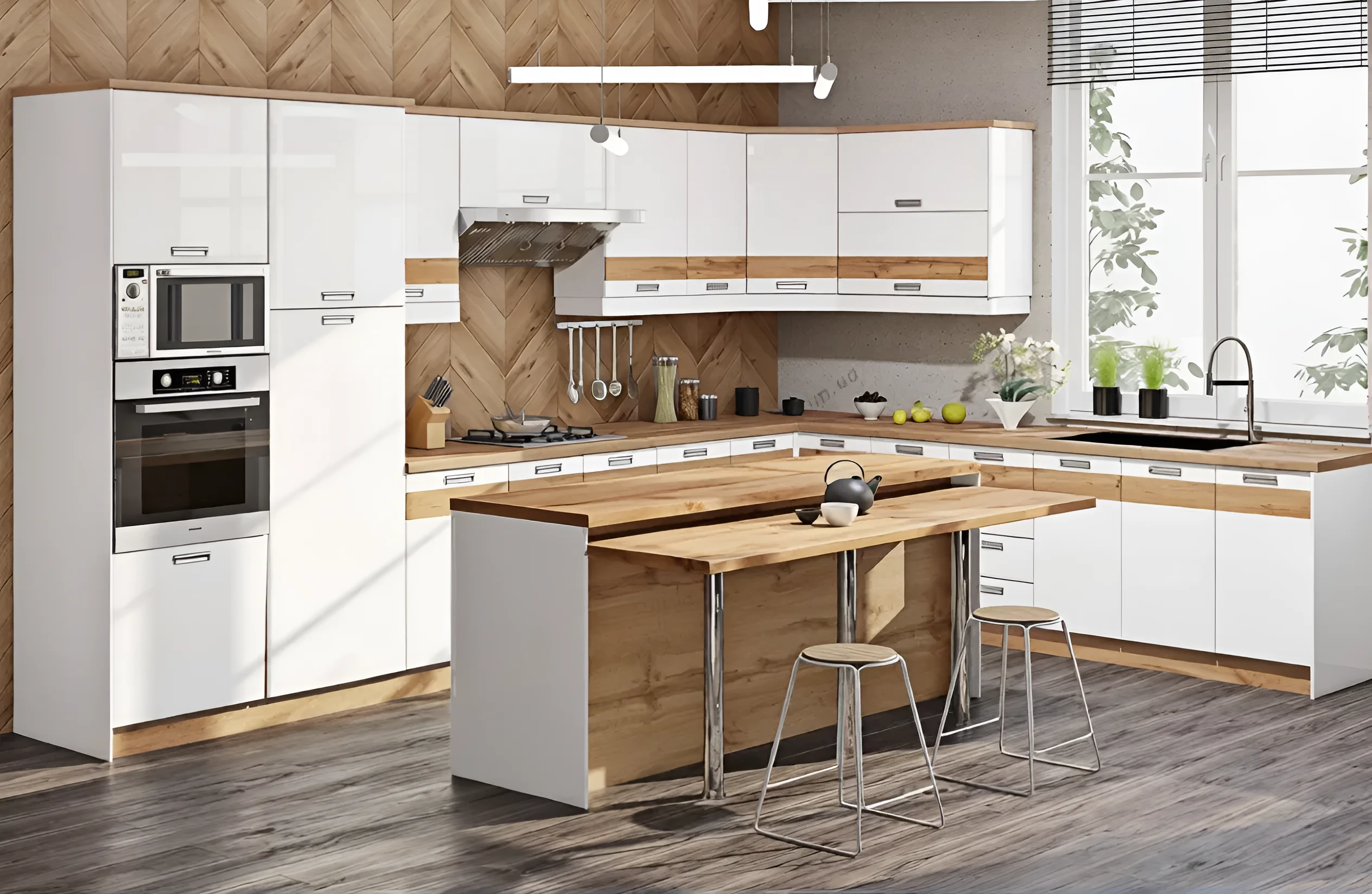 Die Küche „High-Tech mit Farbdruck“ 4,05 x 3m Weiß ist immer auf Lager, was eine schnelle Bearbeitung Ihrer Bestellung und eine zügige Abwicklung garantiert. Wir verstehen, wie wichtig es ist, Möbel so schnell wie möglich zu erhalten, und tun alles dafür. Alle Möbel werden demontiert geliefert, sorgfältig in robusten Paketen verpackt, was den Transport erheblich erleichtert und die Elemente vor Beschädigung schützt. Jede Verpackung enthält eine detaillierte und verständliche Montageanleitung, die eine einfache Selbstmontage der Küche ermöglicht. Bei Bedarf können Sie jederzeit die Dienste professioneller Monteure in Anspruch nehmen, die von MebelTops.com empfohlen werden. Wir bieten eine schnelle und zuverlässige Lieferung in der gesamten Ukraine, wodurch der Kaufprozess für unsere Kunden so bequem und problemlos wie möglich wird. Sie erhalten nicht nur ein Set von Elementen, sondern eine fertige Lösung, die Ihre Küche in einen modernen, funktionalen und ästhetisch ansprechenden Raum verwandelt, der all Ihren Erwartungen entspricht. Wir sind stolz darauf, hochwertige Möbel zu erschwinglichen Preisen anzubieten und Ihr Zuhause komfortabler und schöner zu machen.