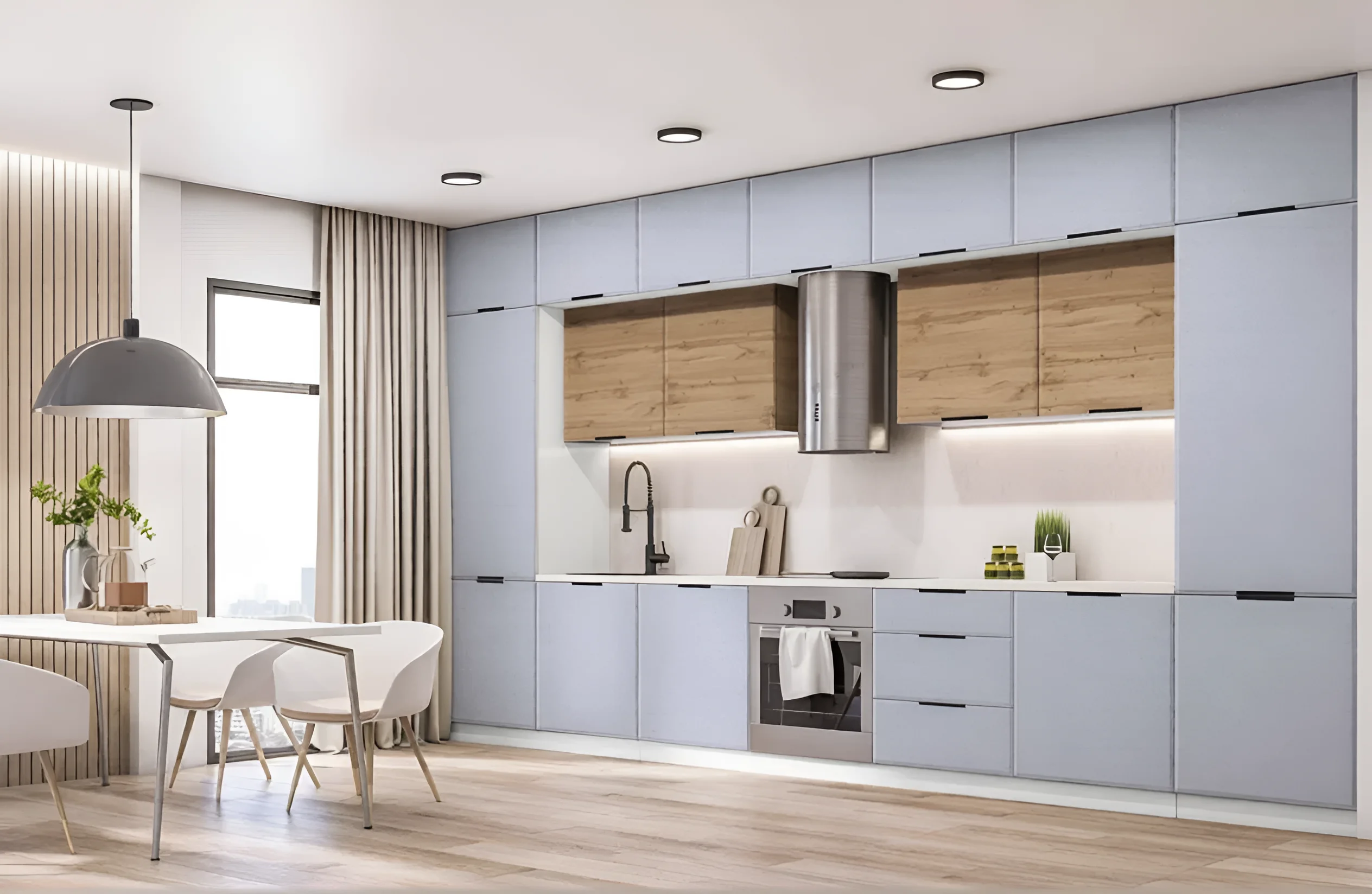 Мы понимаем, что кухня — это долгосрочная инвестиция, поэтому при ее производстве используются только проверенные и качественные материалы. Фасады из МДФ известны своей прочностью, устойчивостью к влаге и температурным перепадам, а также легкостью в обработке, что позволяет создавать идеально ровные и гладкие поверхности. Покрытие из ПВХ-пленки дополнительно защищает МДФ от механических повреждений, царапин и воздействия бытовой химии. Корпус кухни изготовлен из ДСП — материала, отличающегося высокой плотностью и надежностью, обеспечивающего жесткость конструкции и долгий срок службы всех элементов гарнитура. Благодаря тщательному подбору материалов, готовая кухня “Хай-тек” 3,6м будет радовать вас своим безупречным видом и функциональностью на протяжении многих лет.