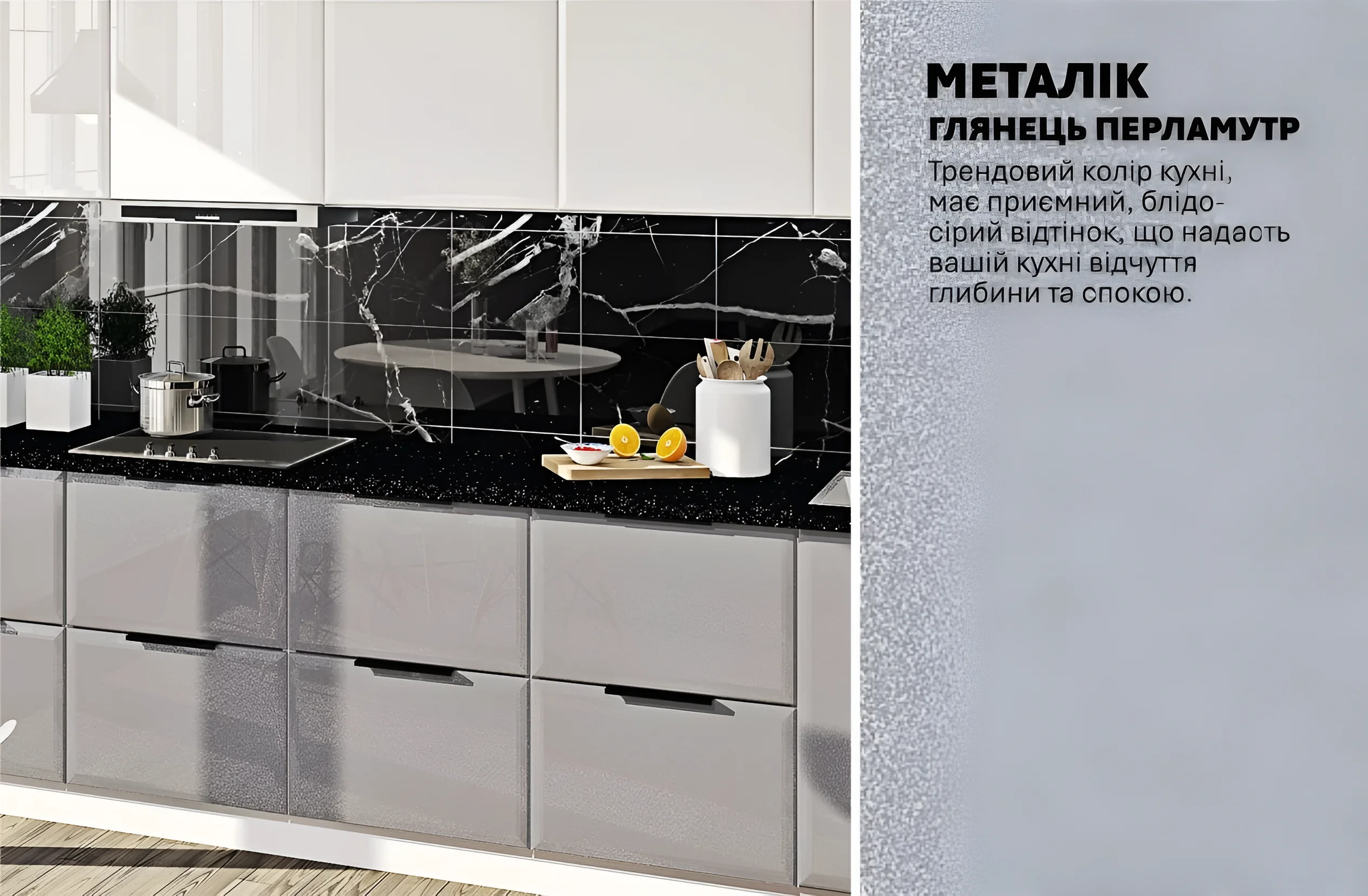 Готовая кухня “Хай-тек” 3,6м Белый, Металлик