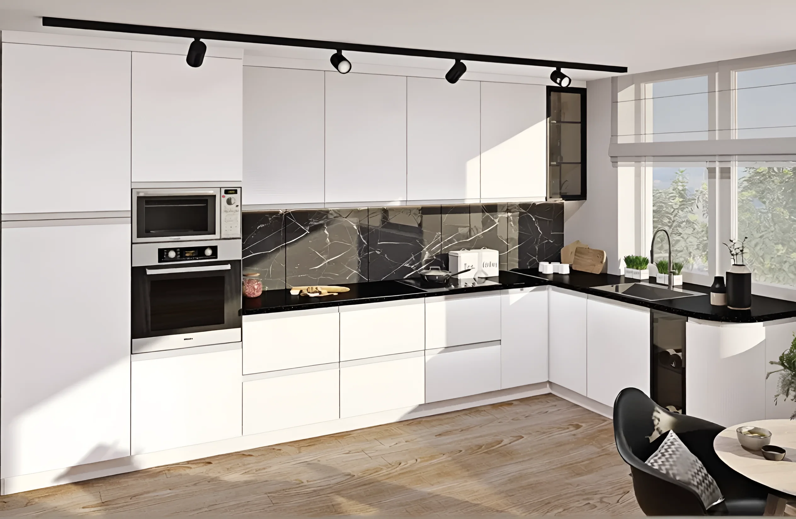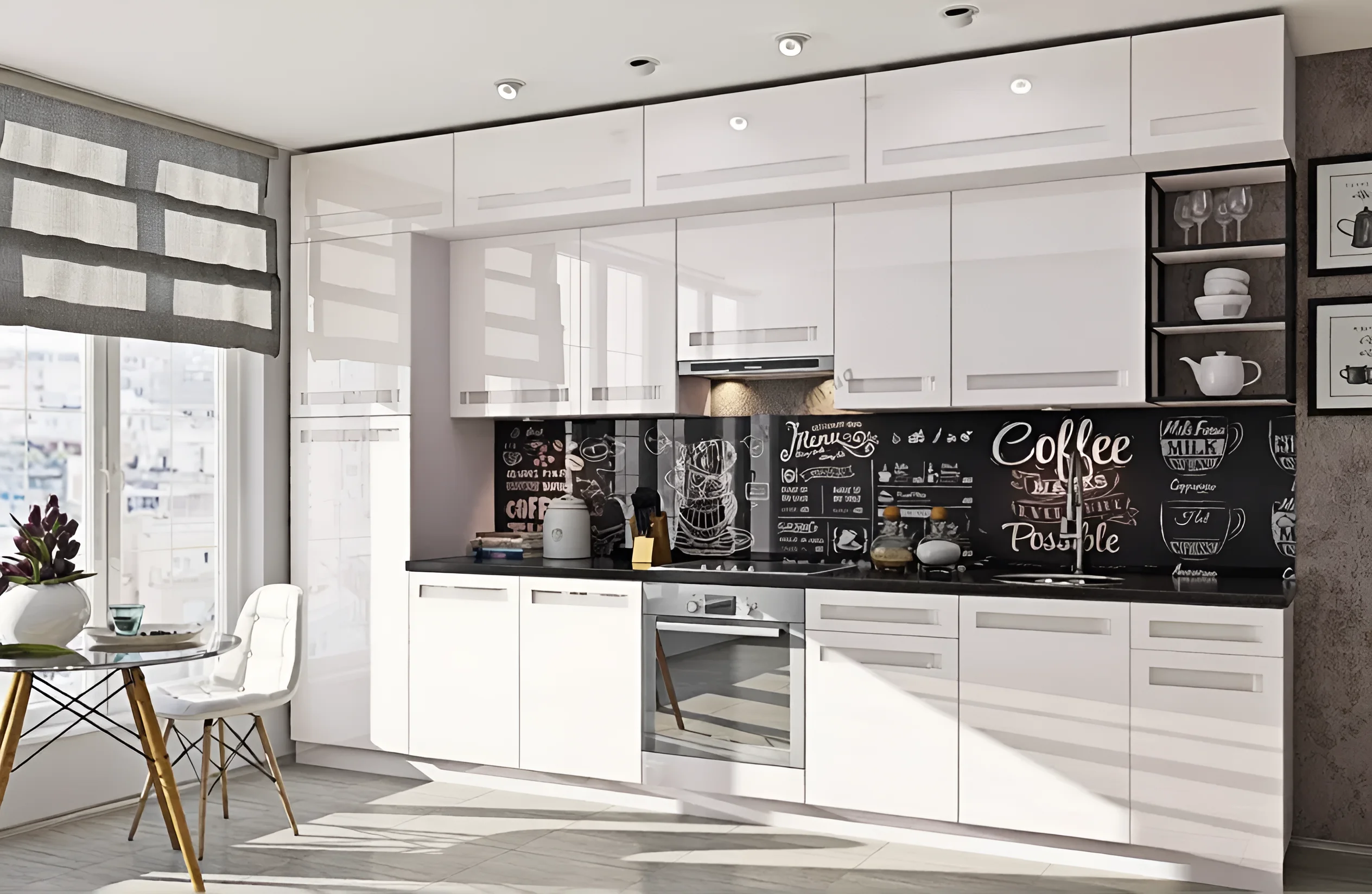 Create the kitchen of your dreams with MebelTops.com. Our team is always ready to help you with your choice and answer all your questions to make the purchasing process as simple and enjoyable as possible. The white “Alpha Handle” kitchen is an investment in the comfort, style, and coziness of your home that will delight you every day.