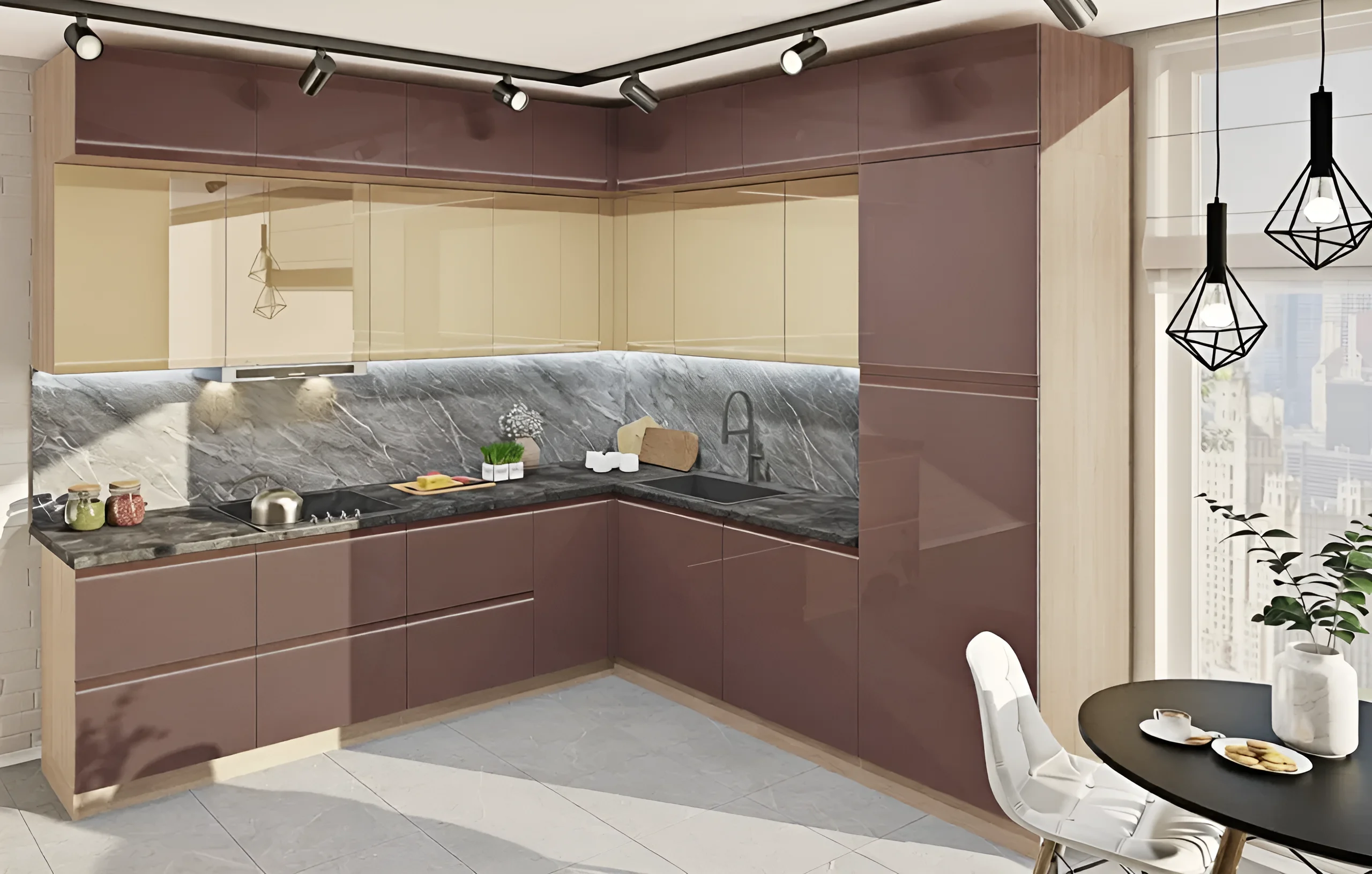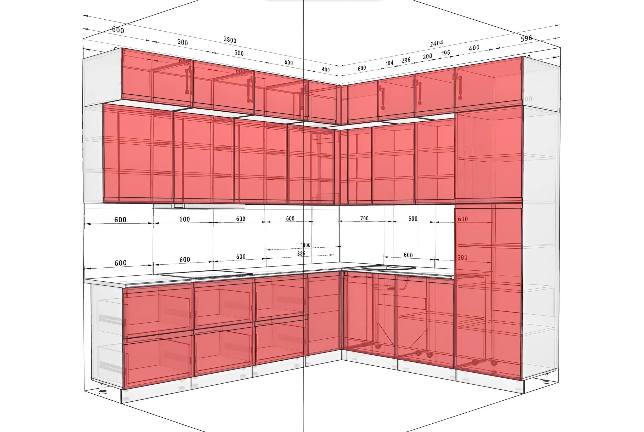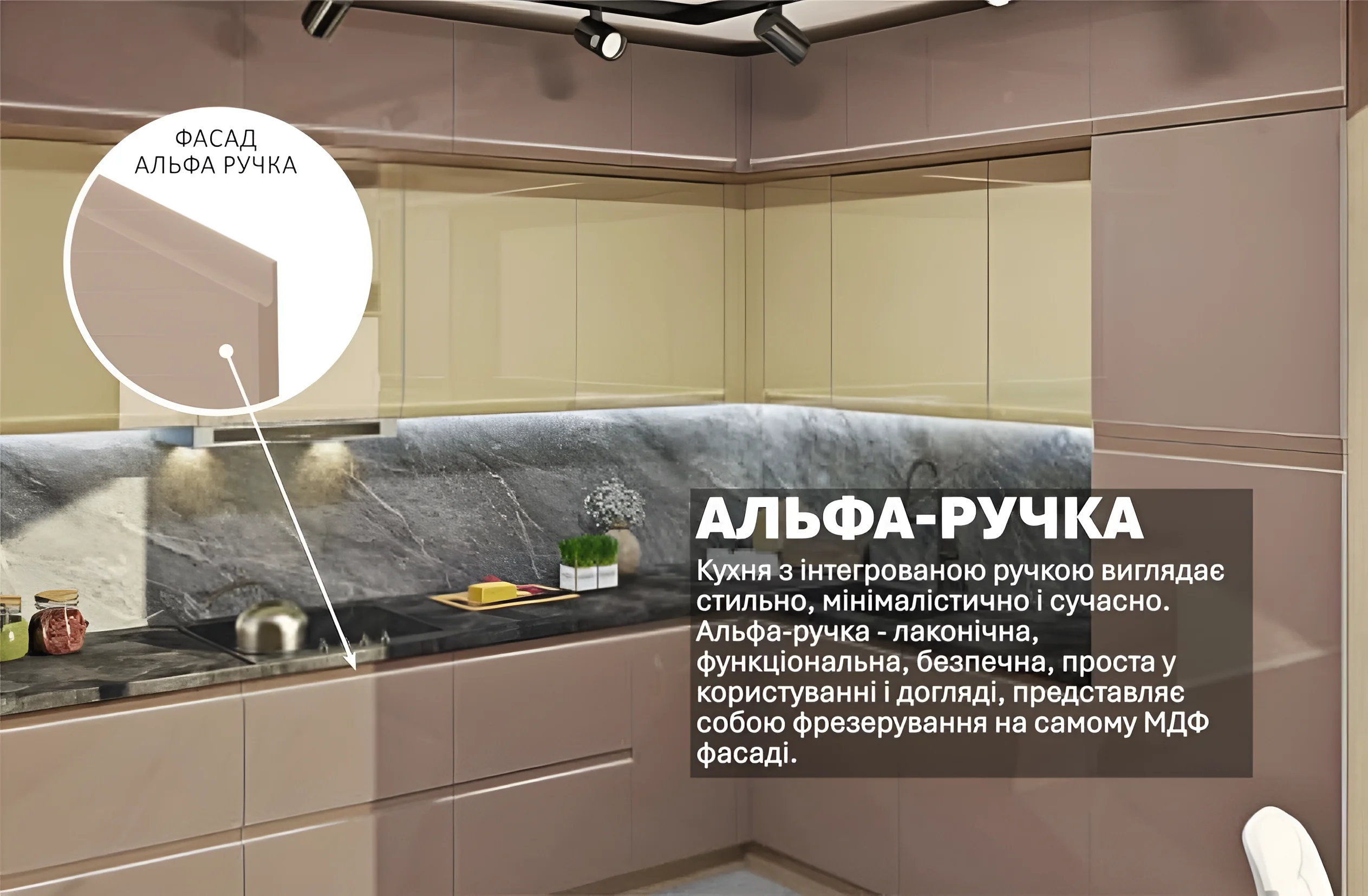 We present to your attention the “Alpha Handle” kitchen – the ideal solution for those who value modern style, functionality, and coziness in their interior. This model combines the elegance of painted glossy MDF facades with the practicality of well-thought-out design solutions. With dimensions of 2.8×2.4 meters and a total height up to the ceiling (2.5 m), this kitchen will become the central element of your home, providing maximum convenience and aesthetic pleasure.