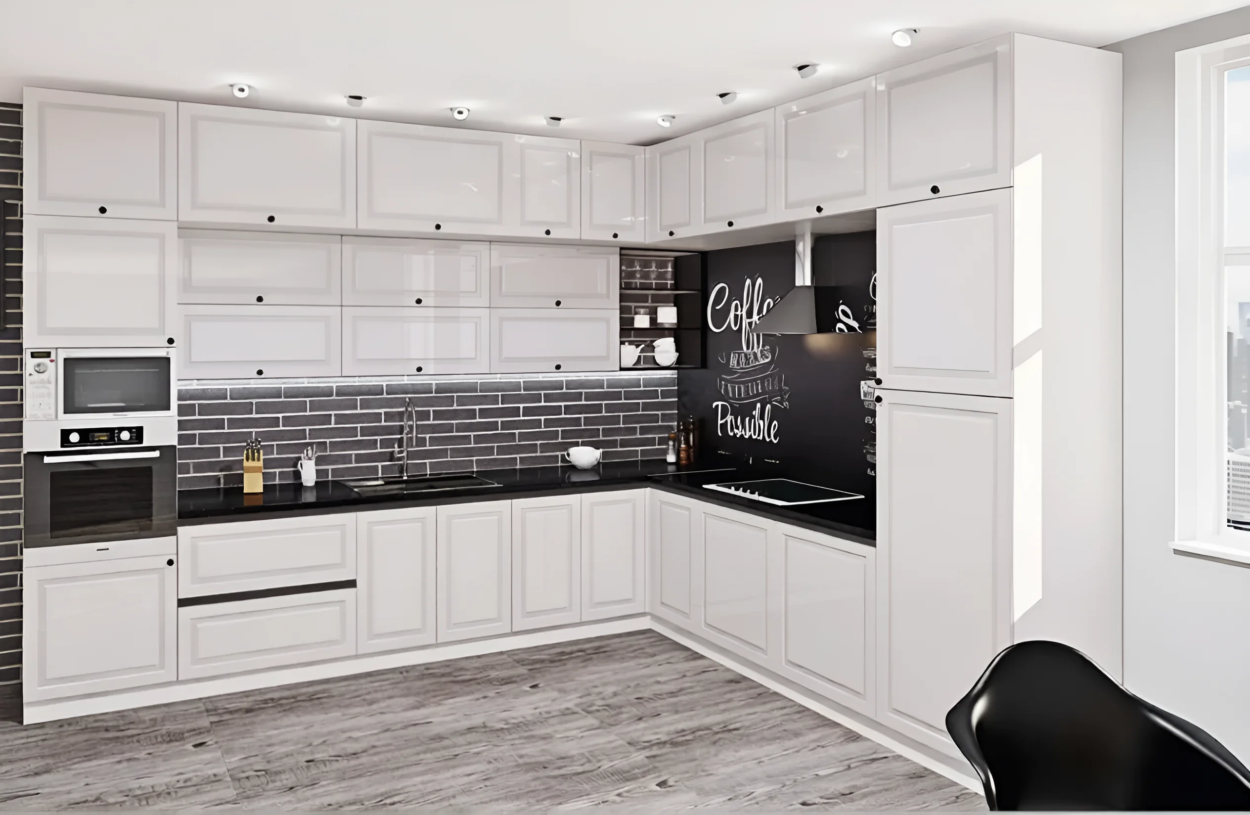 We present to your attention the elegant and functional “Atlanta” kitchen from MebelTops.com, which will become the true heart of your home. This model, made in a luxurious white color with painted glossy MDF fronts, combines modern design, excellent quality, and thoughtful ergonomics. “Atlanta” is not just a set of cabinets, it is a complete solution for those who value style, comfort, and durability.