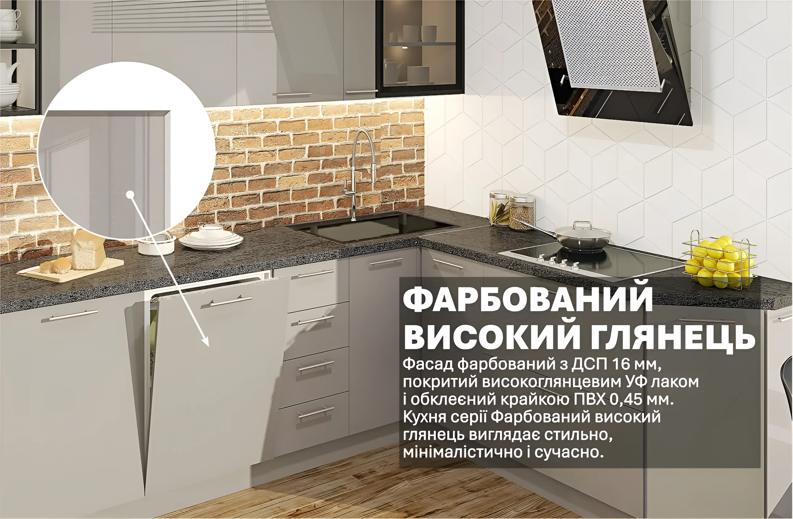 Buy Kitchen “Painted High Gloss” 2.6 x 2.1m Corner Cashmere in Ukraine on the MebelTops.com website.