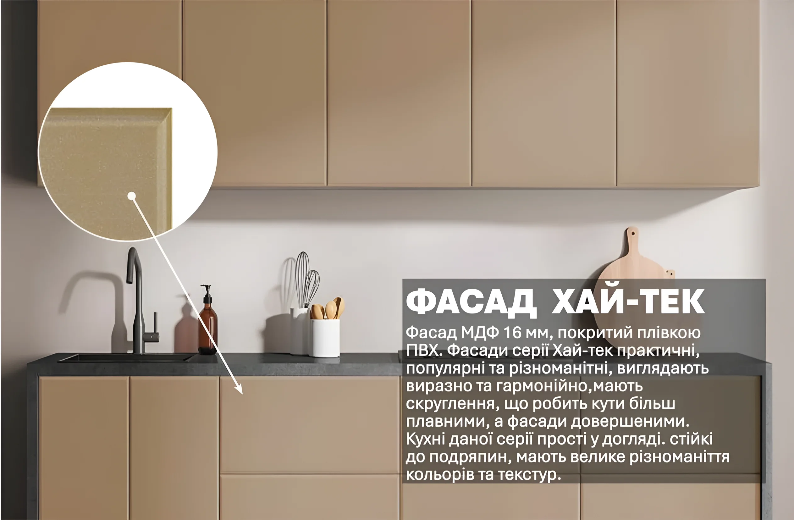 You can buy the Small Kitchen “Hi-Tech” 2.4 meters Cappuccino in Ukraine on the MebelTops.com website.