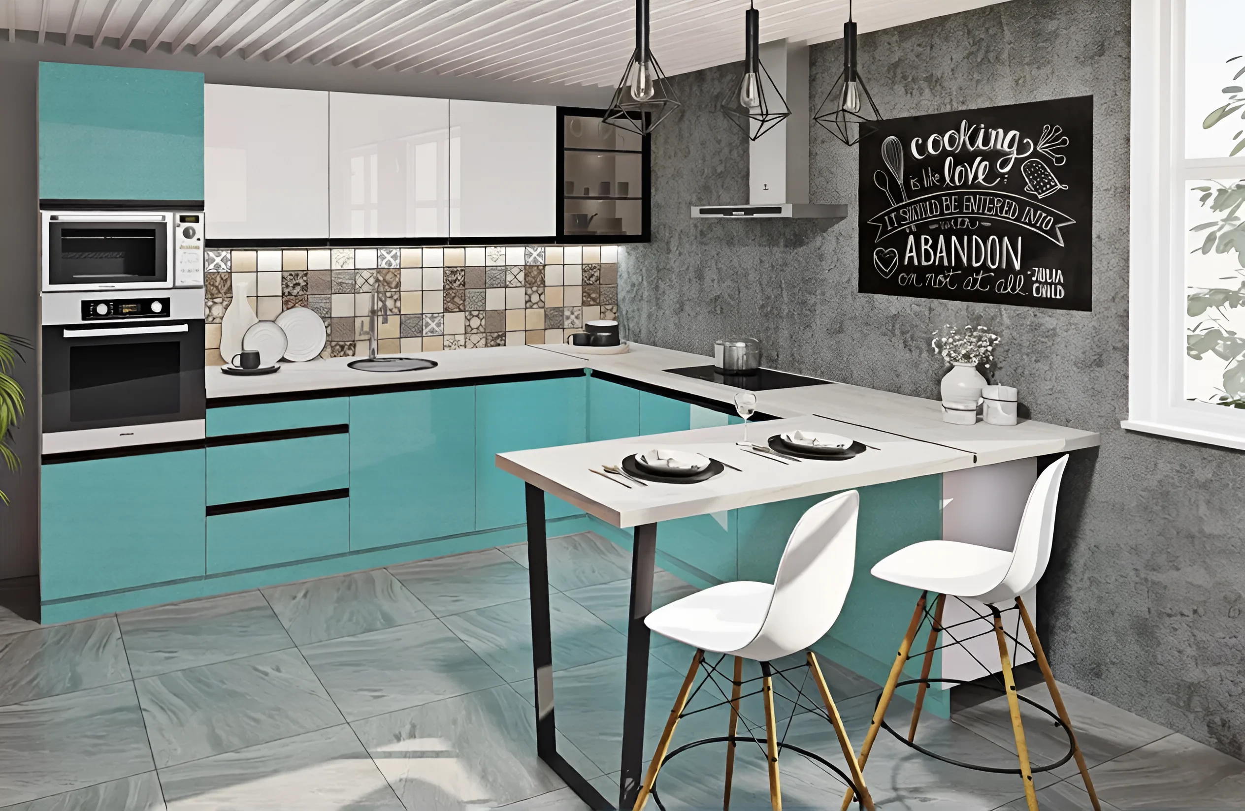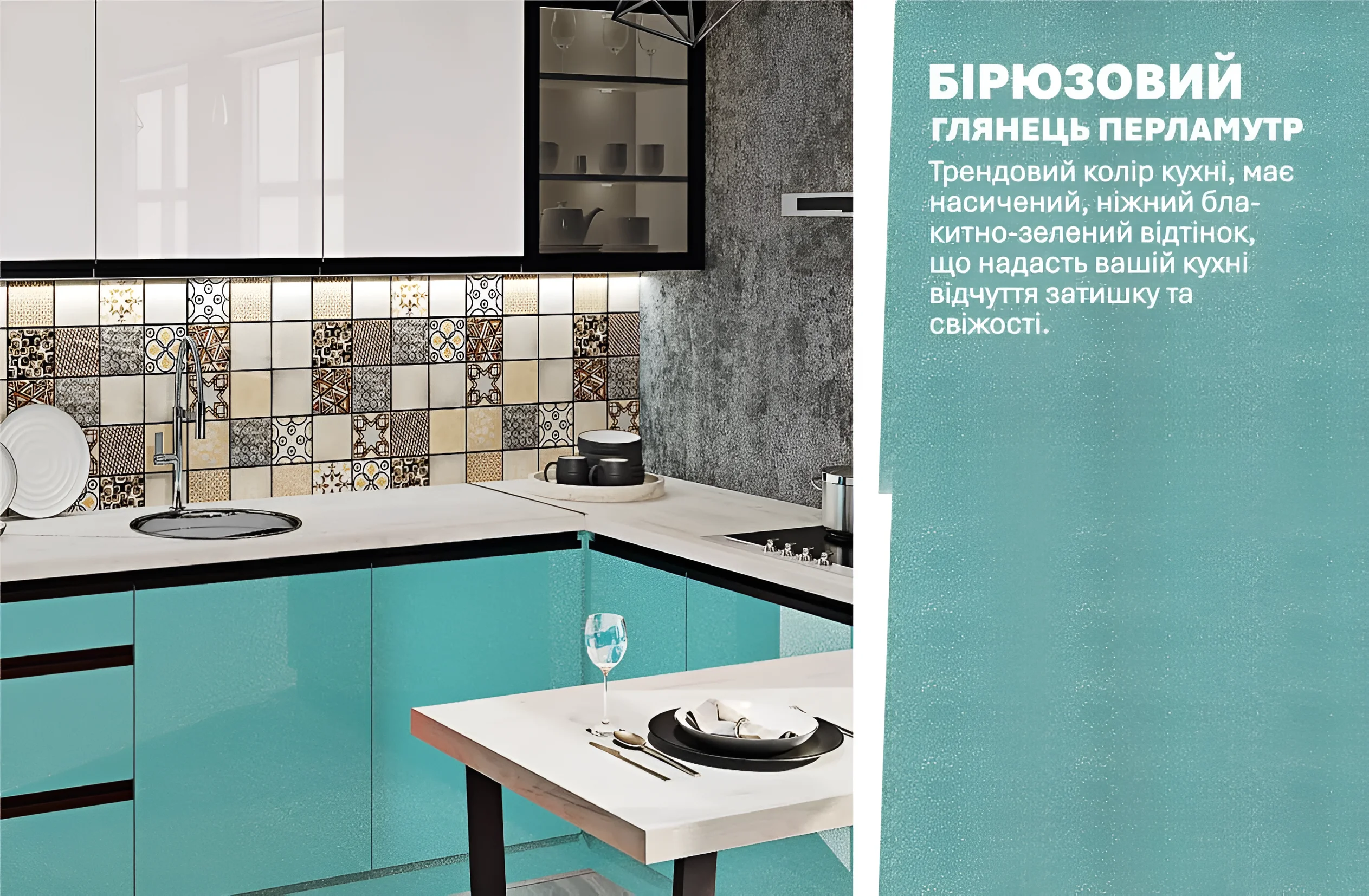 The modern U-shaped “Sigma Handle” kitchen in white and turquoise is not just furniture, it’s an investment in the comfort, style, and functionality of your home. The combination of high-quality materials, thoughtful design, customization options, and an extended warranty makes it an ideal choice for modern interiors. Create a space where it’s pleasant to cook, gather with family, and entertain guests. Discover perfection in every detail with the “Sigma Handle” kitchen.