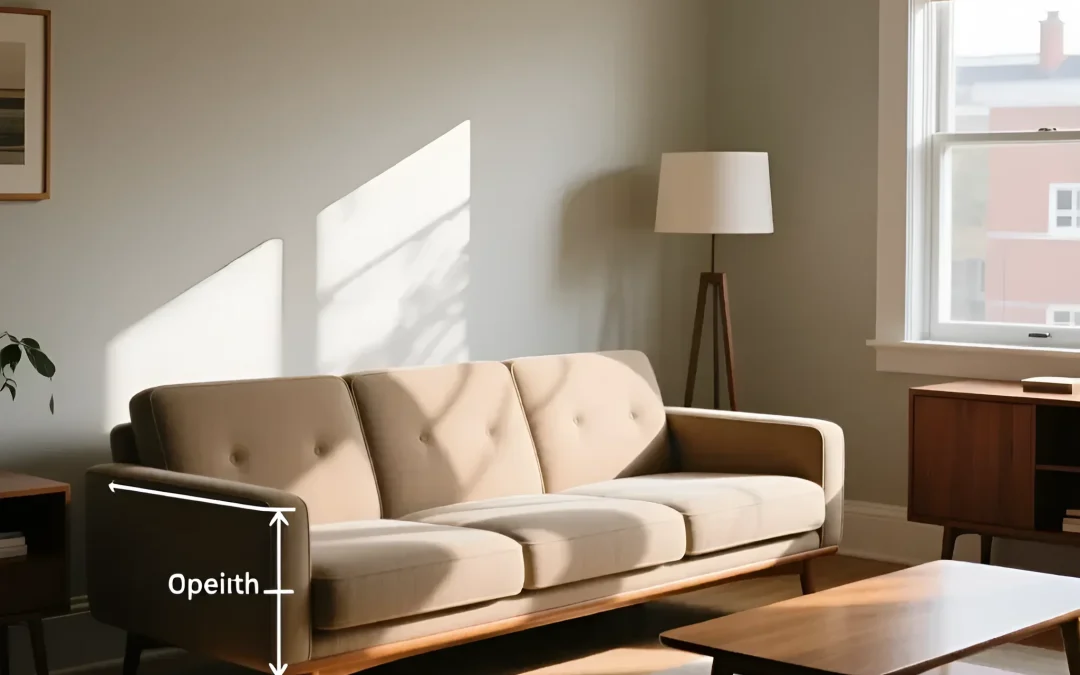 Представлен классический трехместный диван в стиле Mid-Century Modern, отличающийся лаконичными формами и открытым деревянным основанием. Эта модель имеет прямую, нераскладную конструкцию с тремя мягкими подушками сиденья и спинки, украшенными деликатной каретной стяжкой. Габариты (ориентировочно 200-220 см в длину) делают его идеальным для средних и просторных гостиных, обеспечивая комфортное размещение для трех человек.