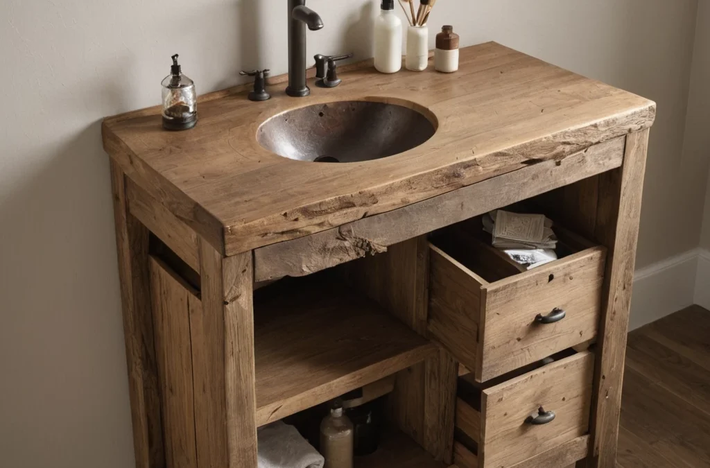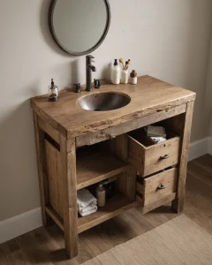 photorealistic, a rustic vanity with a raw edge wood top, natural and earthy №06 — mebeltops.com