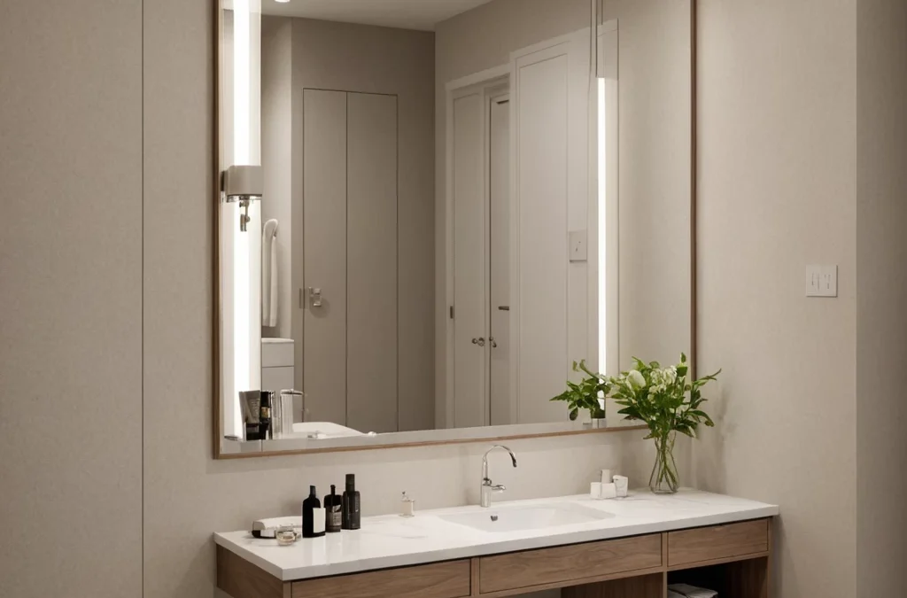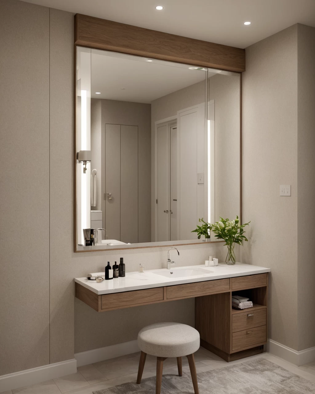 photorealistic, custom built in vanity nook, seamlessly integrated into a bedroom wall, space efficient and elegant №19 — mebeltops.com