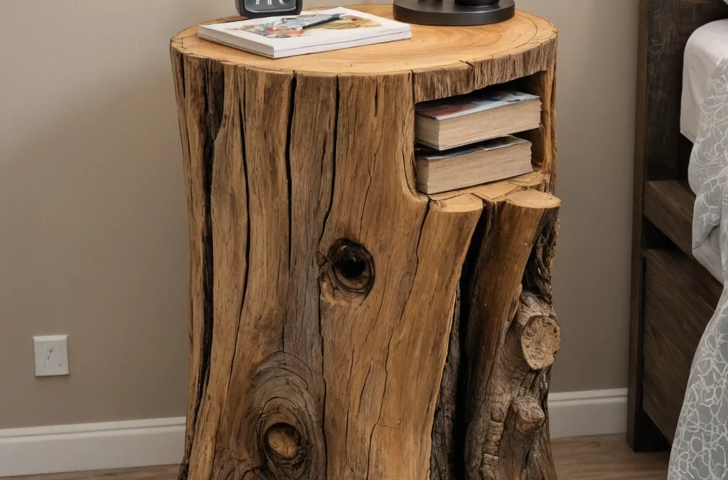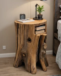 photorealistic, nightstand made from a repurposed tree stump, natural and rustic №27 — mebeltops.com