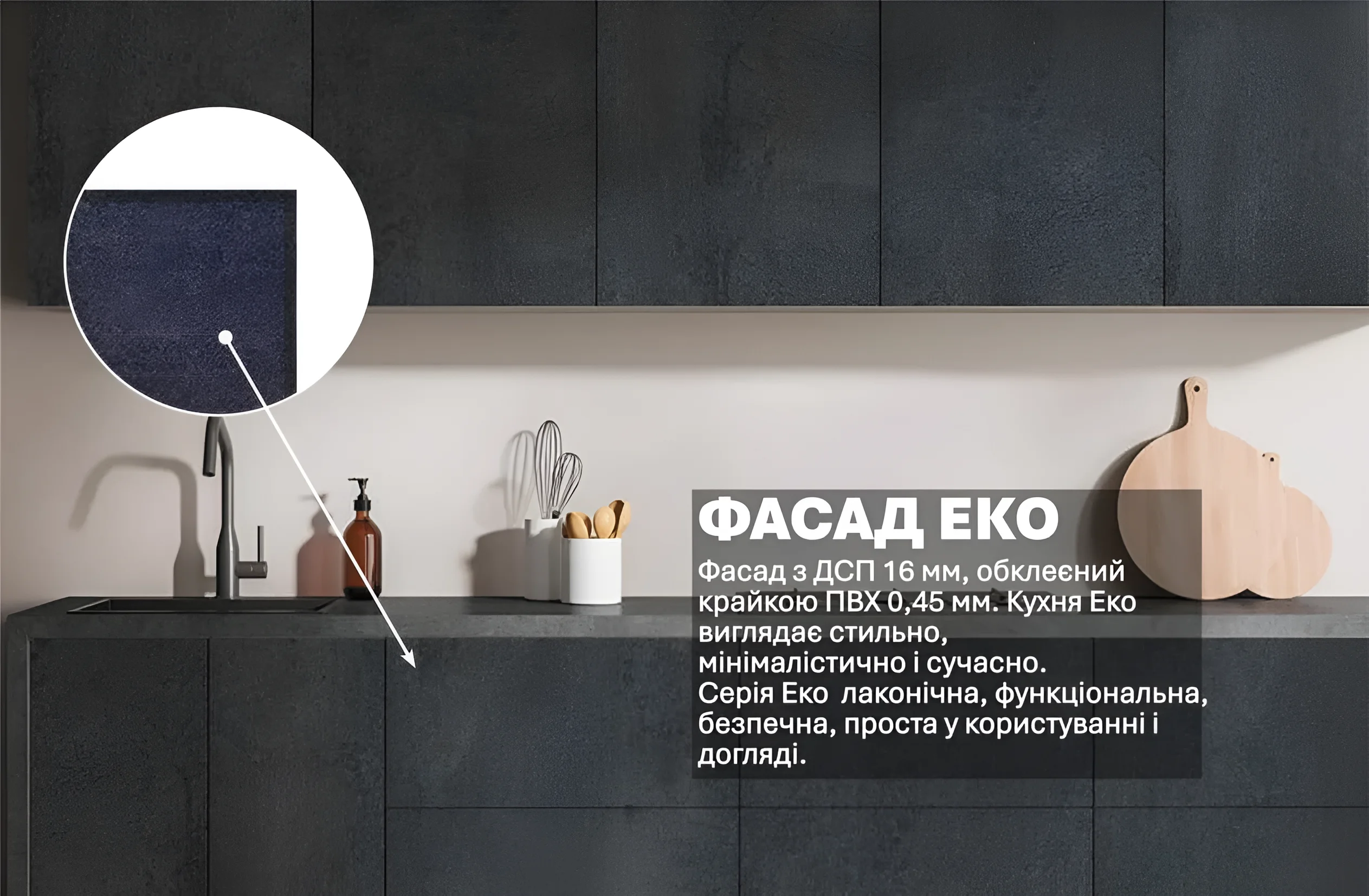 Купить Бюджетная кухня «Эко» 2,4 метра прямая Угольный камень в Украине вы можете на сайте MebelTops.com.