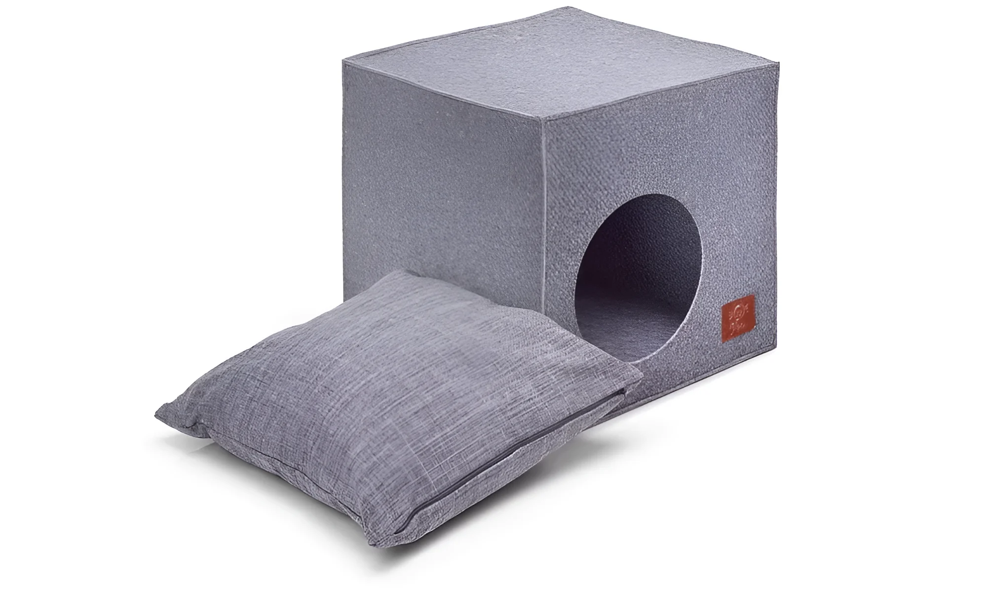 Домик Pet House выполнен в минималистичном, но очень элегантном дизайне. Его строгие кубические формы и приятный серый цвет делают его универсальным решением для любого современного интерьера. Изготовленный из высококачественного войлока, он обладает не только привлекательным внешним видом, но и приятной на ощупь текстурой. Войлок – это материал, который придает домику особый шарм и ощущение природной теплоты. Отсутствие лишних деталей и лаконичность форм позволяют домику Pet House легко интегрироваться в гостиную, спальню или даже рабочий кабинет, не нарушая общую гармонию пространства. Небольшой круглый вход добавляет игривости и приглашает питомца внутрь, создавая интригу и ощущение собственного маленького мира.