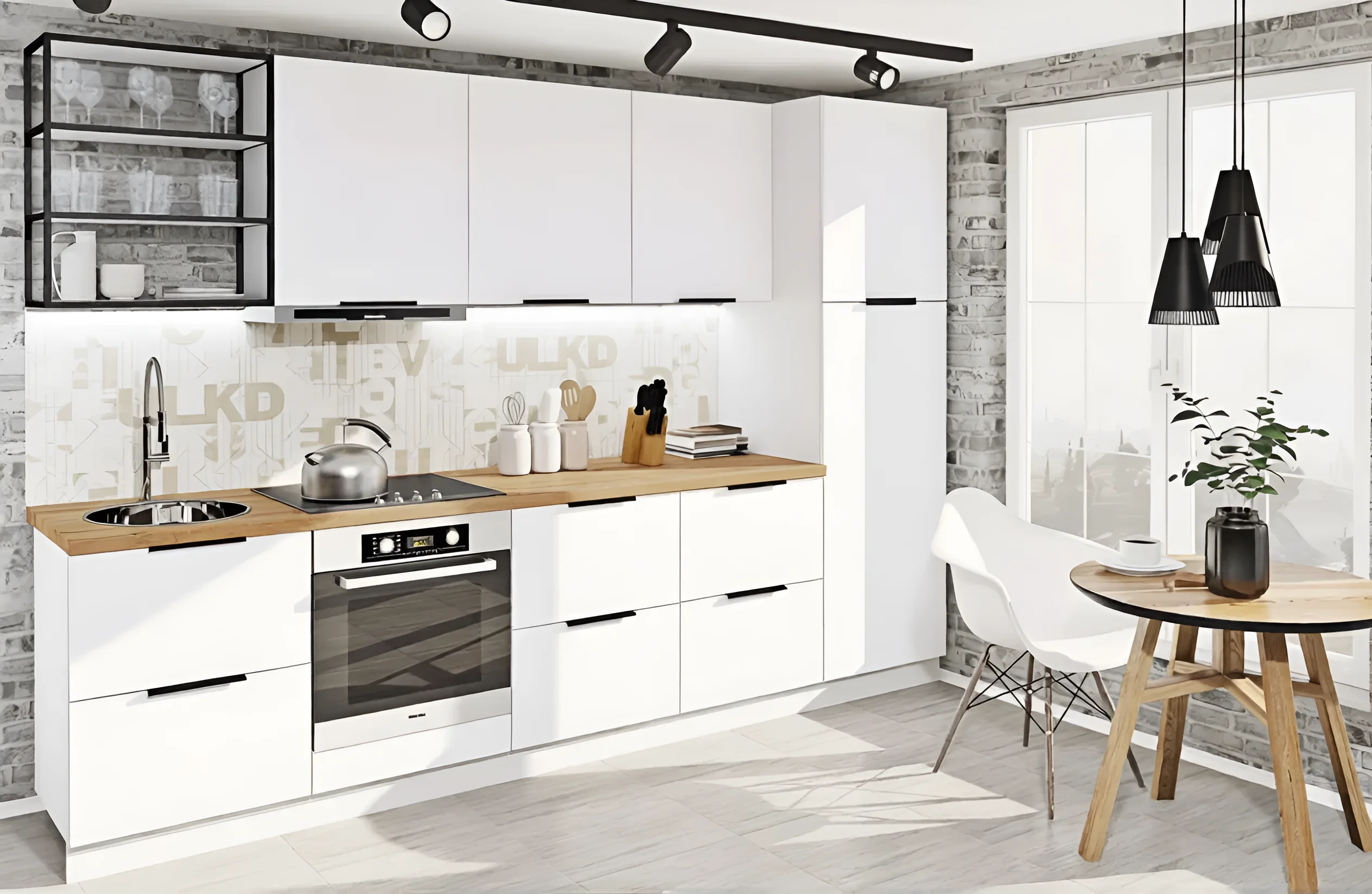 Представляем идеальное решение для современных квартир и студий – маленькую кухню «Лофт» длиной 2 метра. Эта модель, выполненная в элегантном белом цвете с фасадами из крашеного МДФ, станет настоящим украшением вашего дома, придав ему легкость и воздушность. Сочетание минималистичного дизайна в стиле «Лофт» и продуманной функциональности делает ее незаменимой для тех, кто ценит комфорт и эстетику даже в ограниченном пространстве.