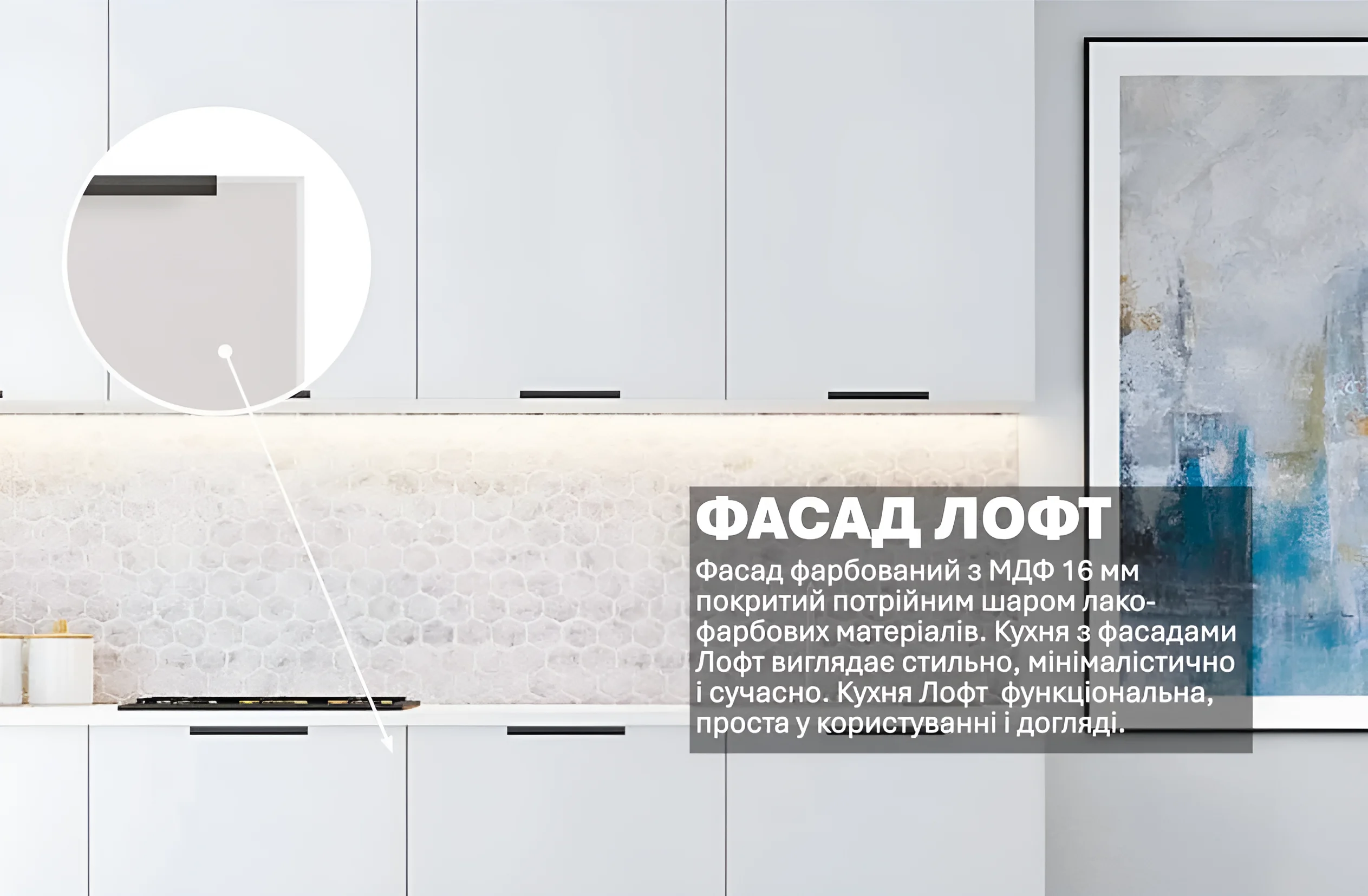 Купить Кухня маленькая «Лофт» 2м крашеный МДФ Белый в Украине вы можете на сайте MebelTops.com.