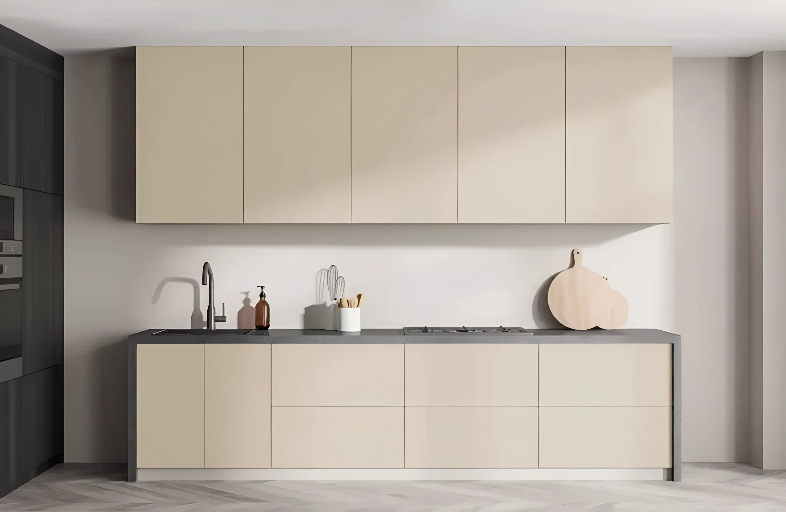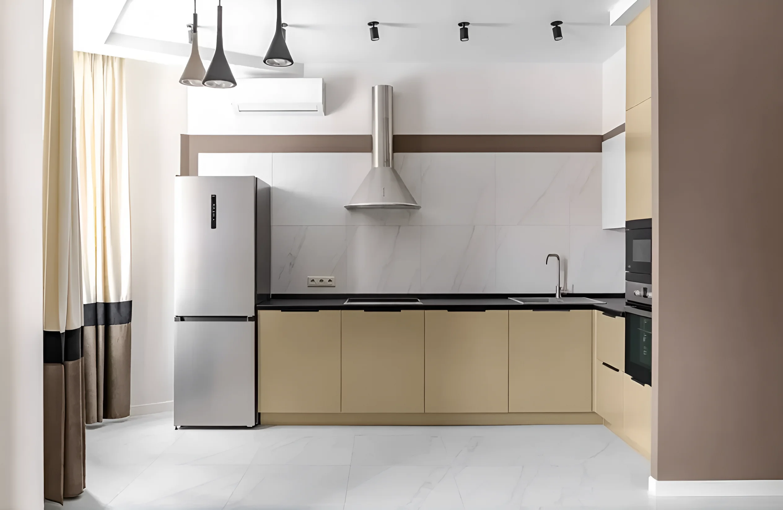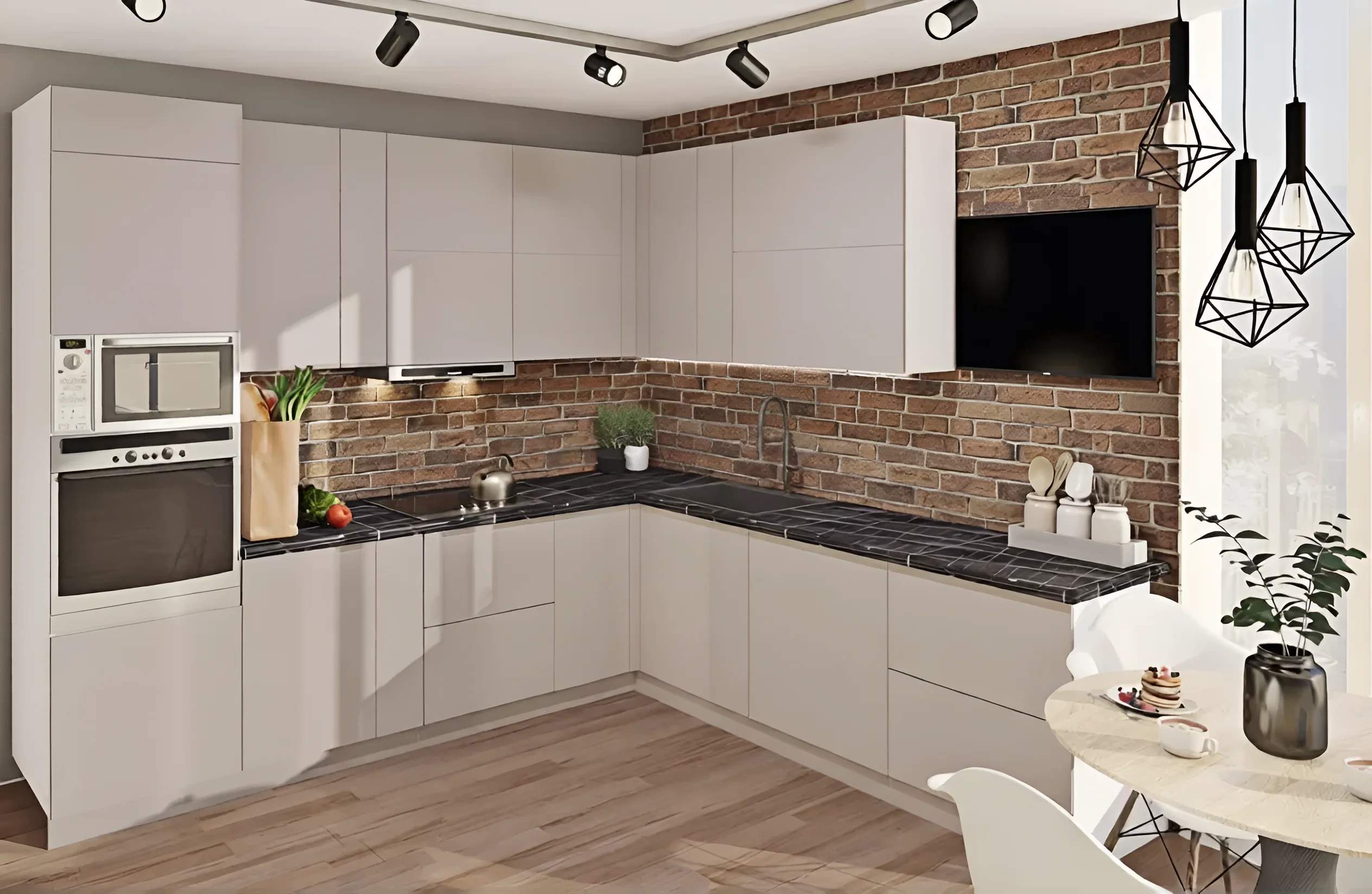 Кухня «Эко» выполнена в популярной угловой конфигурации, которая позволяет максимально эффективно использовать пространство, особенно в помещениях неправильной формы или с ограниченной площадью. Размеры 320 х 180 см обеспечивают достаточно большую рабочую поверхность и объем для хранения, при этом сохраняя компактность. Серия «Эко» отличается лаконичным дизайном, прямыми линиями и отсутствием лишних деталей, что соответствует актуальным трендам минимализма. Цвет фасада – Ваниль – это универсальное решение, которое добавляет света и тепла в интерьер, визуально расширяет пространство и легко сочетается с другими цветами и текстурами. Фасады кухни имеют покрытие из МДФ рамки со вставкой из ламинированной ДСП, что придает им эстетичный вид и делает их устойчивыми к повседневному износу. Эта комбинация материалов обеспечивает не только красоту, но и долговечность поверхностей, которые легко очищаются от загрязнений.