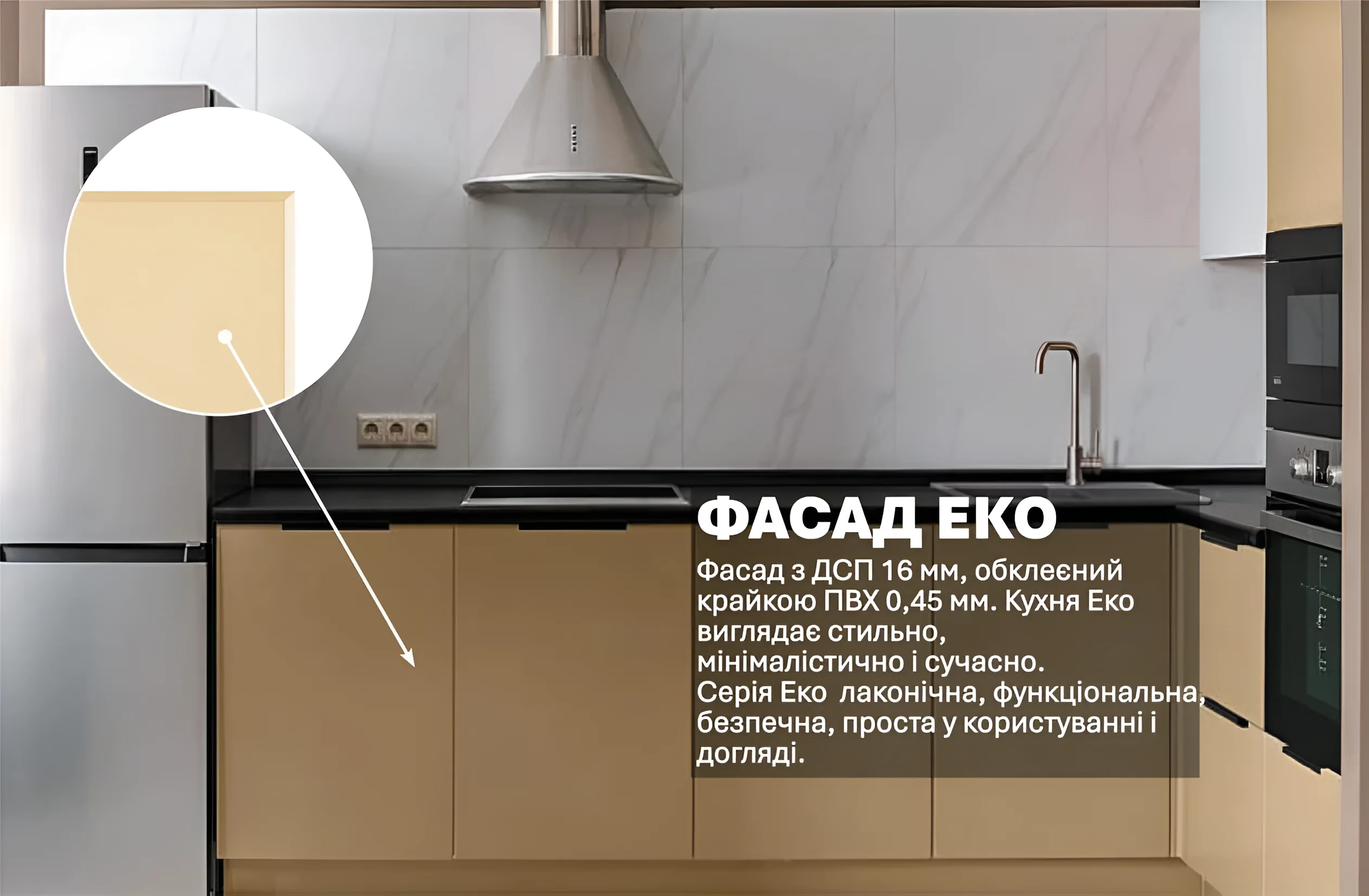 Купить Кухня одноуровневая «Эко» 320 х 180 см угловая Ваниль в Украине вы можете на сайте MebelTops.com.