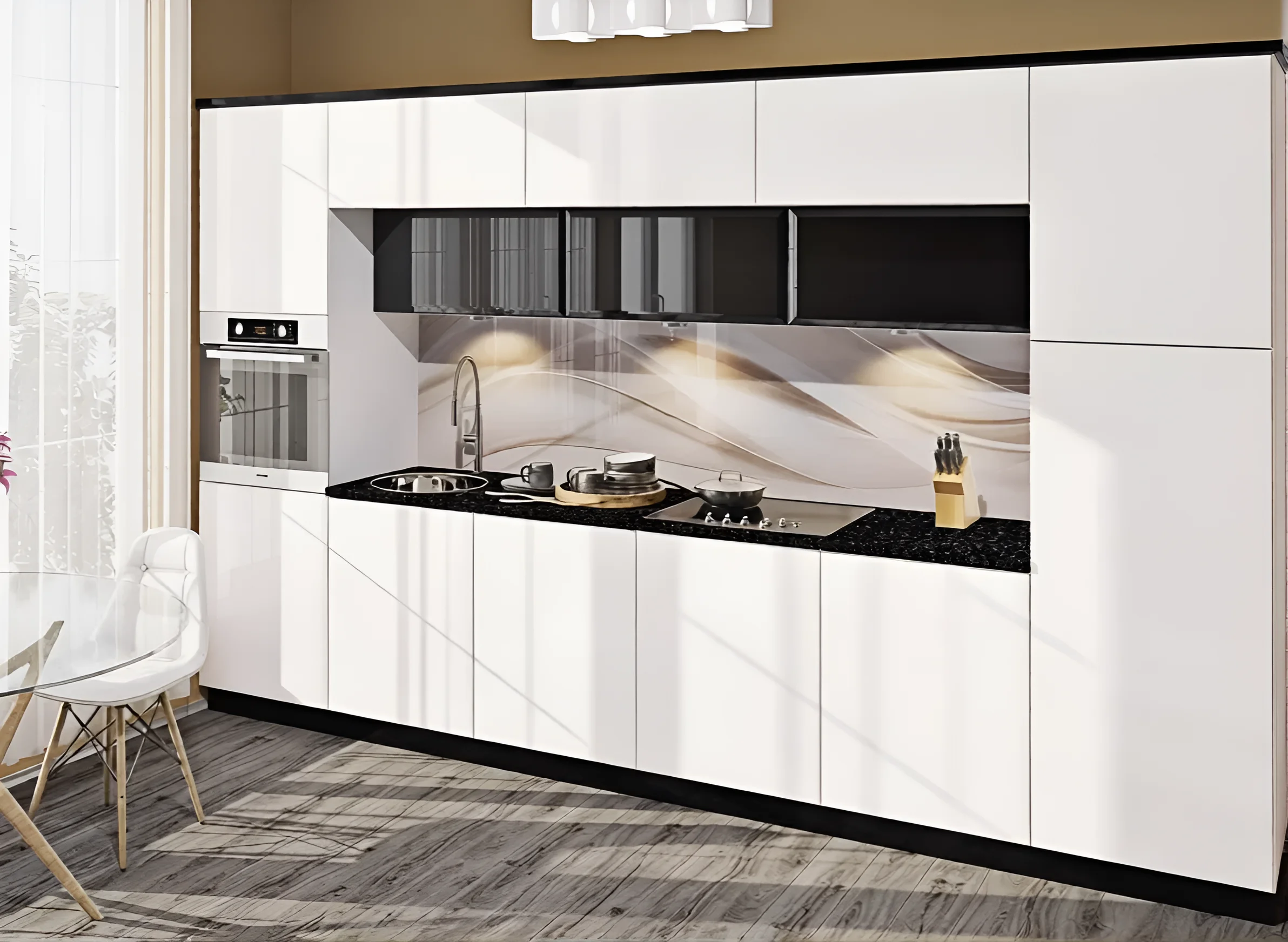 При производстве этой посекционной кухни используются только проверенные и надежные материалы. Фасады, как уже было сказано, изготовлены из прочного МДФ, покрытого глянцевой ПВХ-пленкой, что обеспечивает их устойчивость к влаге, перепадам температур и механическим повреждениям. Корпус кухни выполнен из высококачественного ДСП, известного своей прочностью и долговечностью. Эти материалы гарантируют, что ваша кухня сохранит свой безупречный вид и функциональность на протяжении всего срока службы. Вы можете быть уверены в инвестициях в мебель, которая будет радовать вас каждый день.
