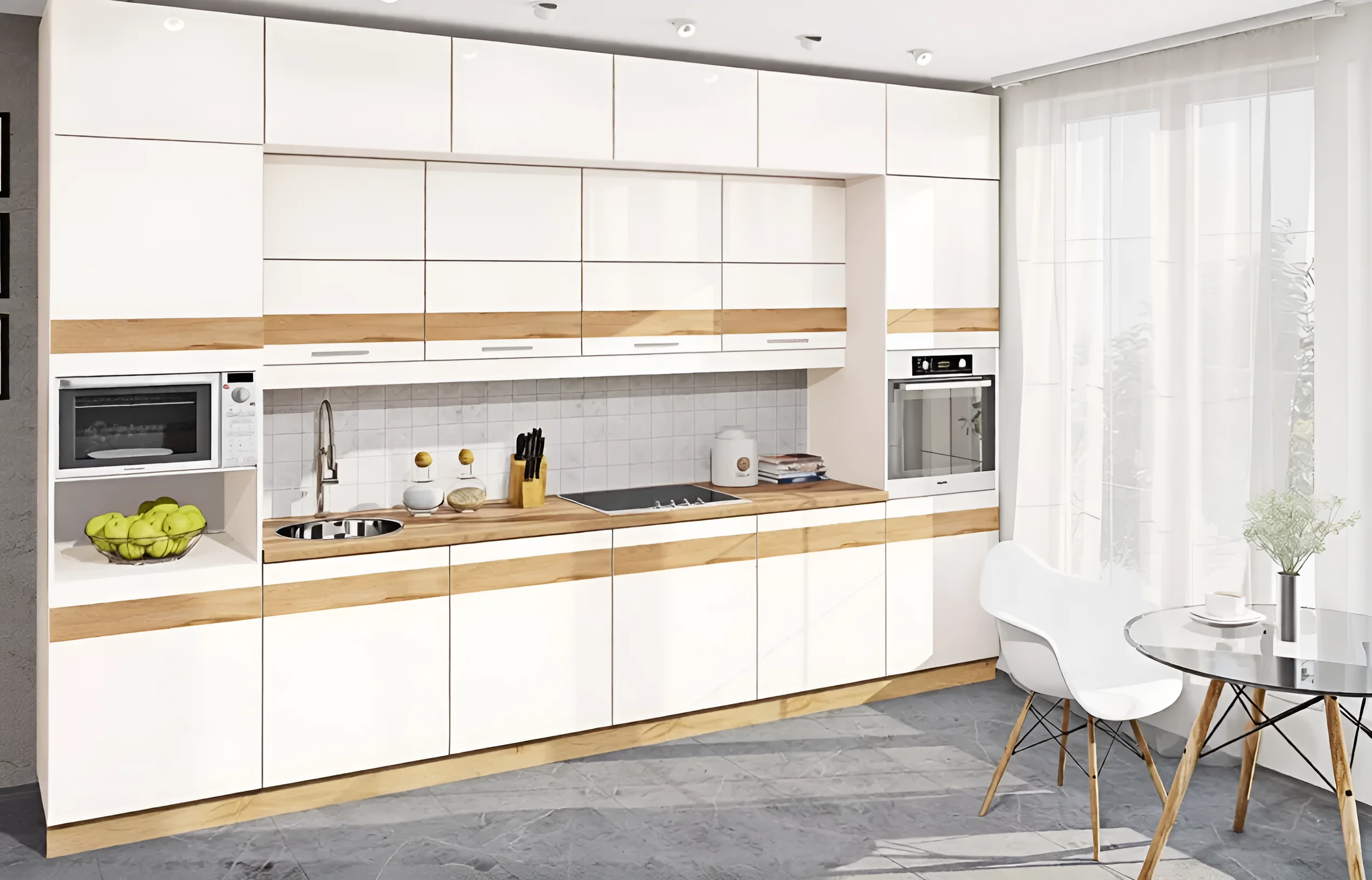 Не упустите шанс преобразить вашу кухню с помощью современного и функционального решения. Белая посекционная кухня «Хай-тек» 3,6 метра — это не просто мебель, это инвестиция в комфорт, стиль и уют вашего дома. Создайте пространство, где будет приятно проводить время с семьей и друзьями, готовить кулинарные шедевры и наслаждаться каждым моментом. Выберите качество и инновации вместе с MebelTops.com.