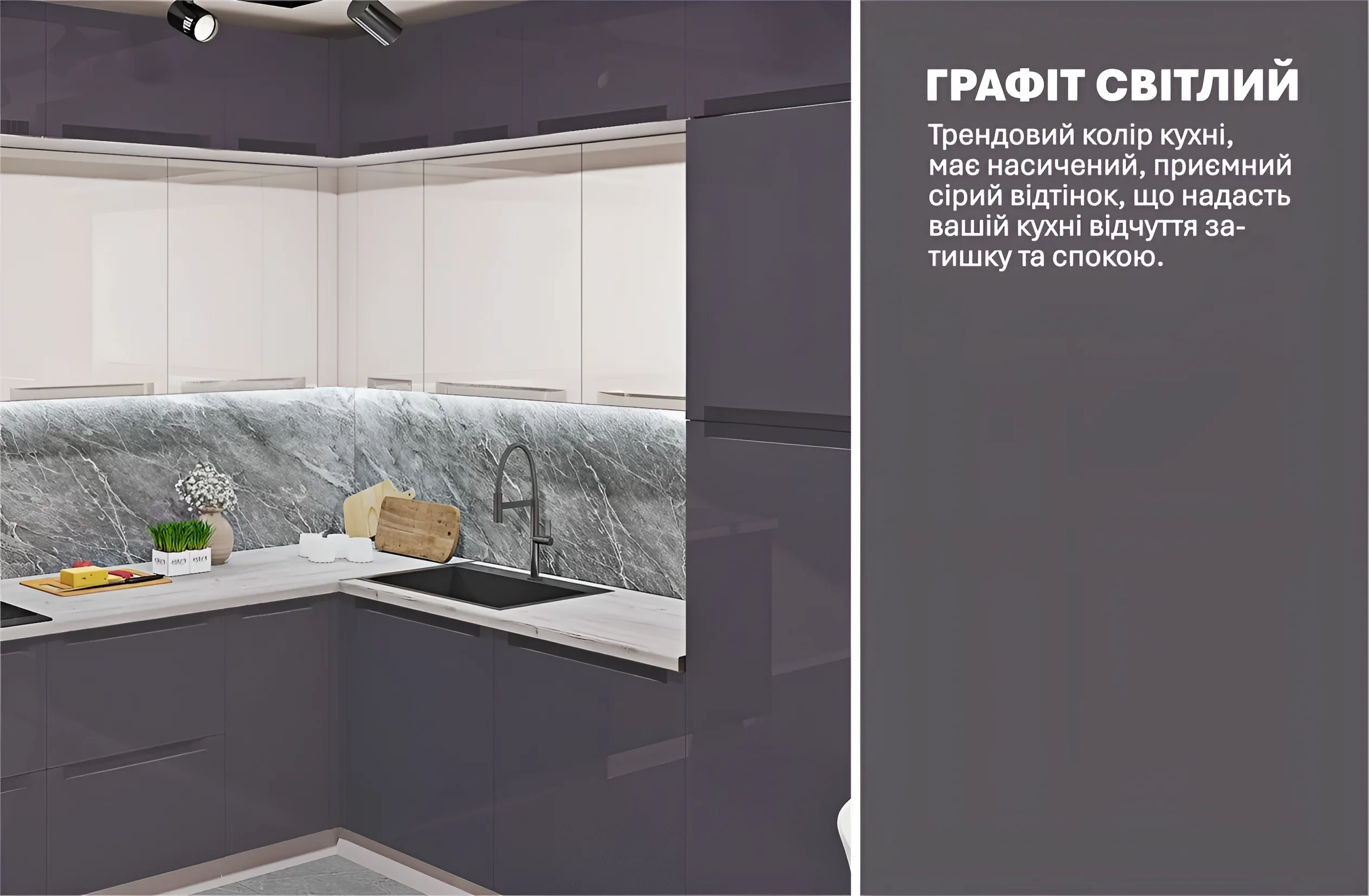 Купить Кухня «Альфа ручка» 2.8х2.4м крашеный МДФ Белый, Графит светлый в Украине вы можете на сайте MebelTops.com.