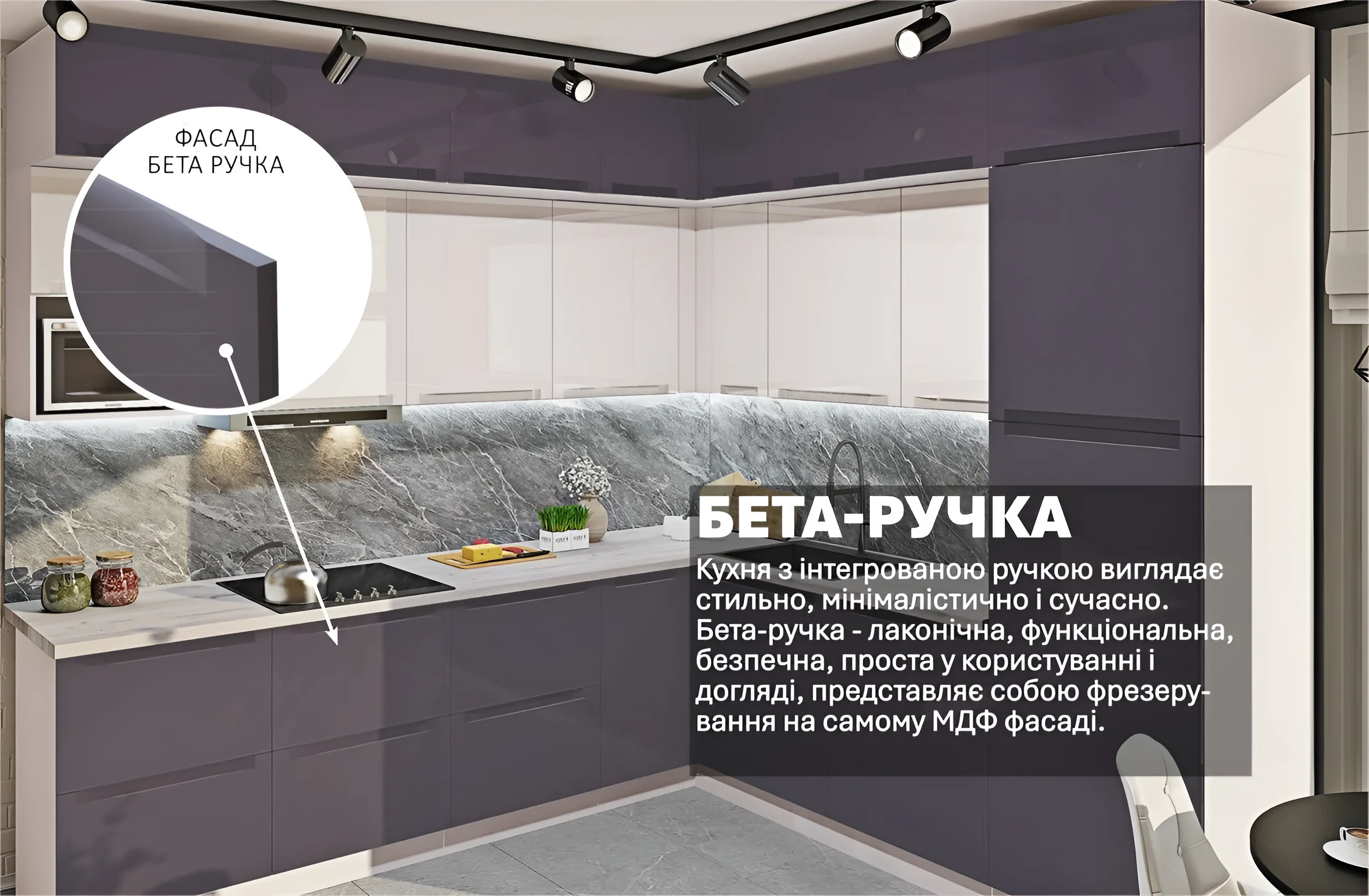 Дизайн кухни «Альфа ручка» продуман до мелочей, чтобы обеспечить максимальное удобство и визуальную привлекательность. Размеры 2.8х2.4м позволяют эффективно использовать пространство как в угловых, так и в линейных конфигурациях, создавая уютную и функциональную зону для приготовления пищи и семейных посиделок. Фасады кухни изготовлены из крашеного МДФ с глянцевым покрытием, что не только придает им роскошный внешний вид, но и обеспечивает легкость в уходе. Глянец отражает свет, делая помещение визуально просторнее и светлее.