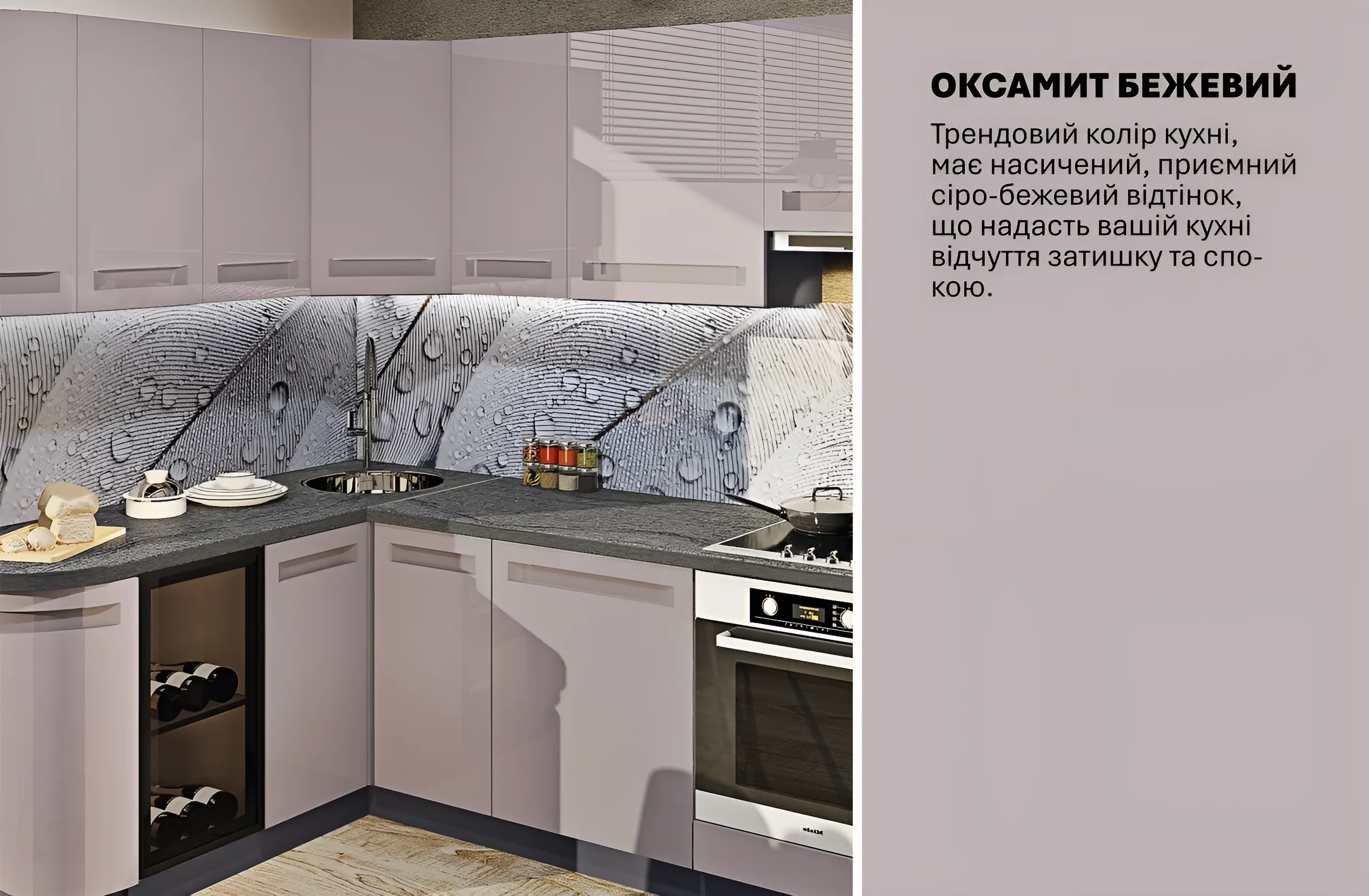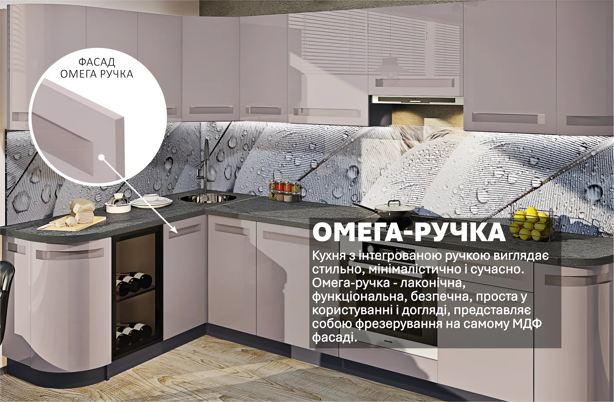 Купить Кухня «Альфа ручка» 3х1,7м крашеный МДФ Бархат бежевый в Украине вы можете на сайте MebelTops.com.