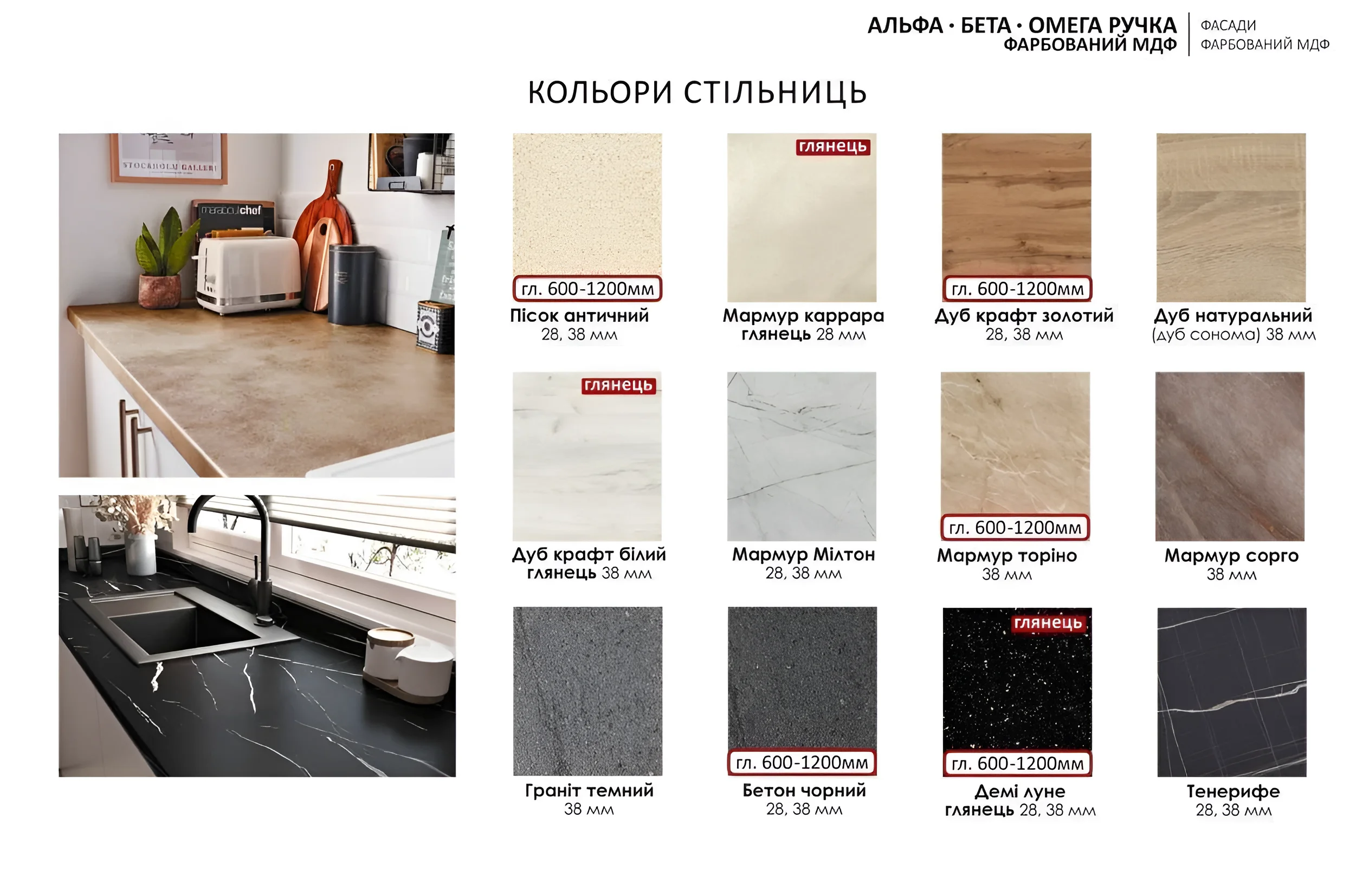 | Высота верхних шкафов | 1080 мм, 1280 мм |
