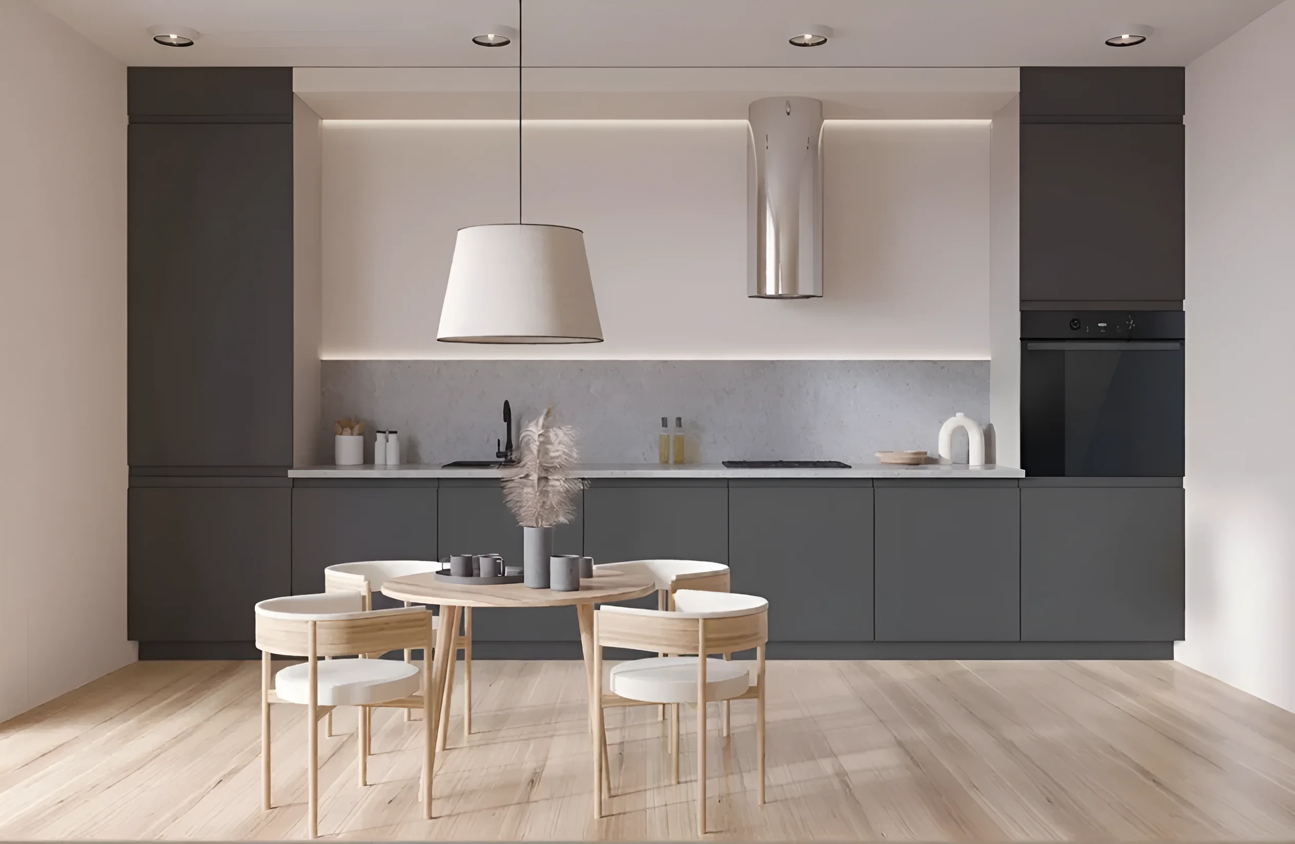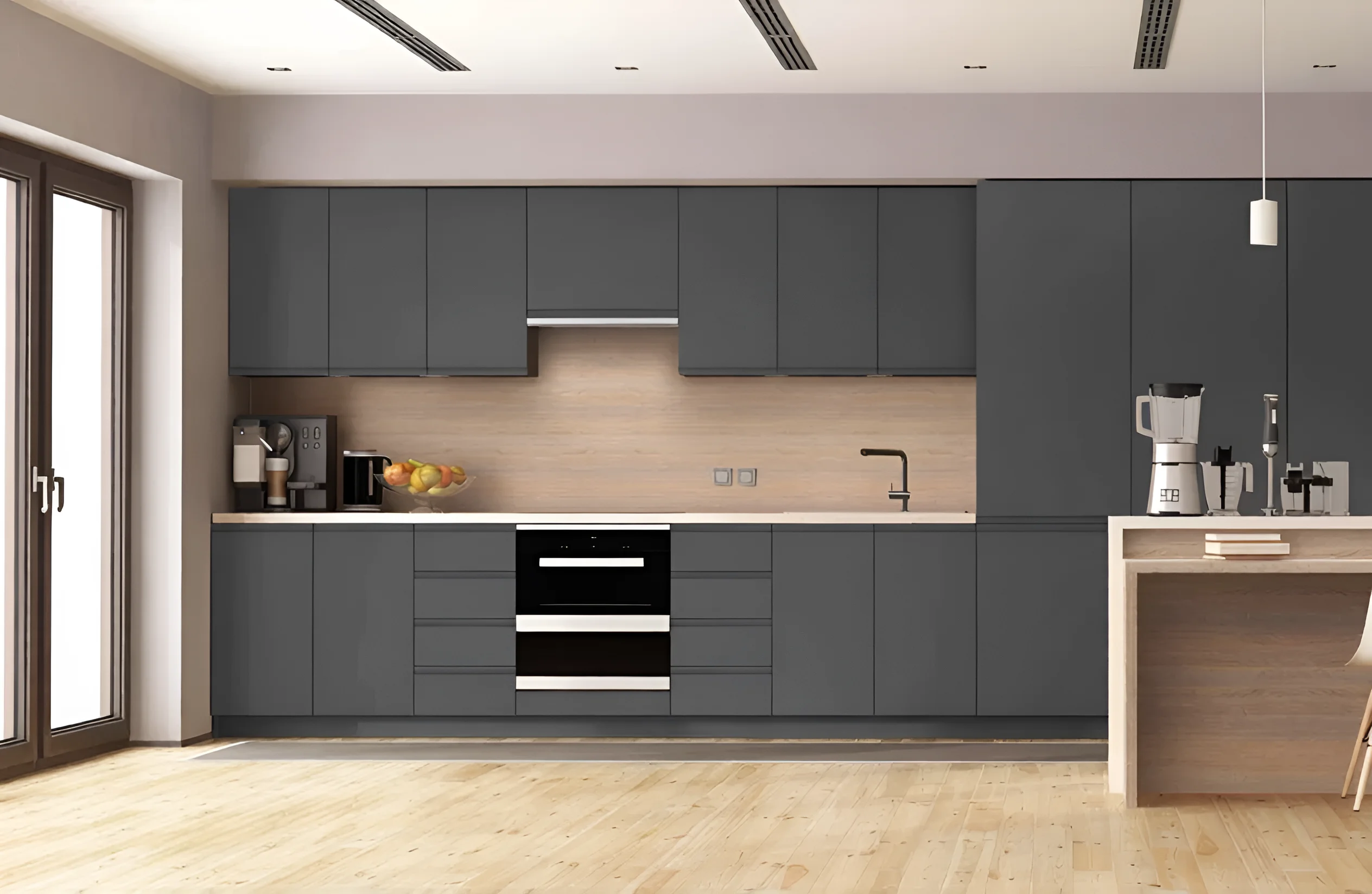Кухня «Альфа ручка» разработана с учетом потребностей современной семьи. Ее угловая конфигурация размером 3х2.2 метра оптимально использует пространство, позволяя эффективно зонировать помещение и создать комфортную рабочую зону. Фасады, изготовленные из крашеного МДФ, отличаются высокой прочностью и устойчивостью к внешним воздействиям. Матовое покрытие не только придает кухне особый шарм и глубину цвета, но и практично в эксплуатации, так как на нем менее заметны отпечатки пальцев и мелкие загрязнения. Цвет Титан – это универсальное и благородное решение, которое легко интегрируется в любой интерьер, от минимализма до хай-тека, добавляя ему изысканности и сдержанной роскоши.