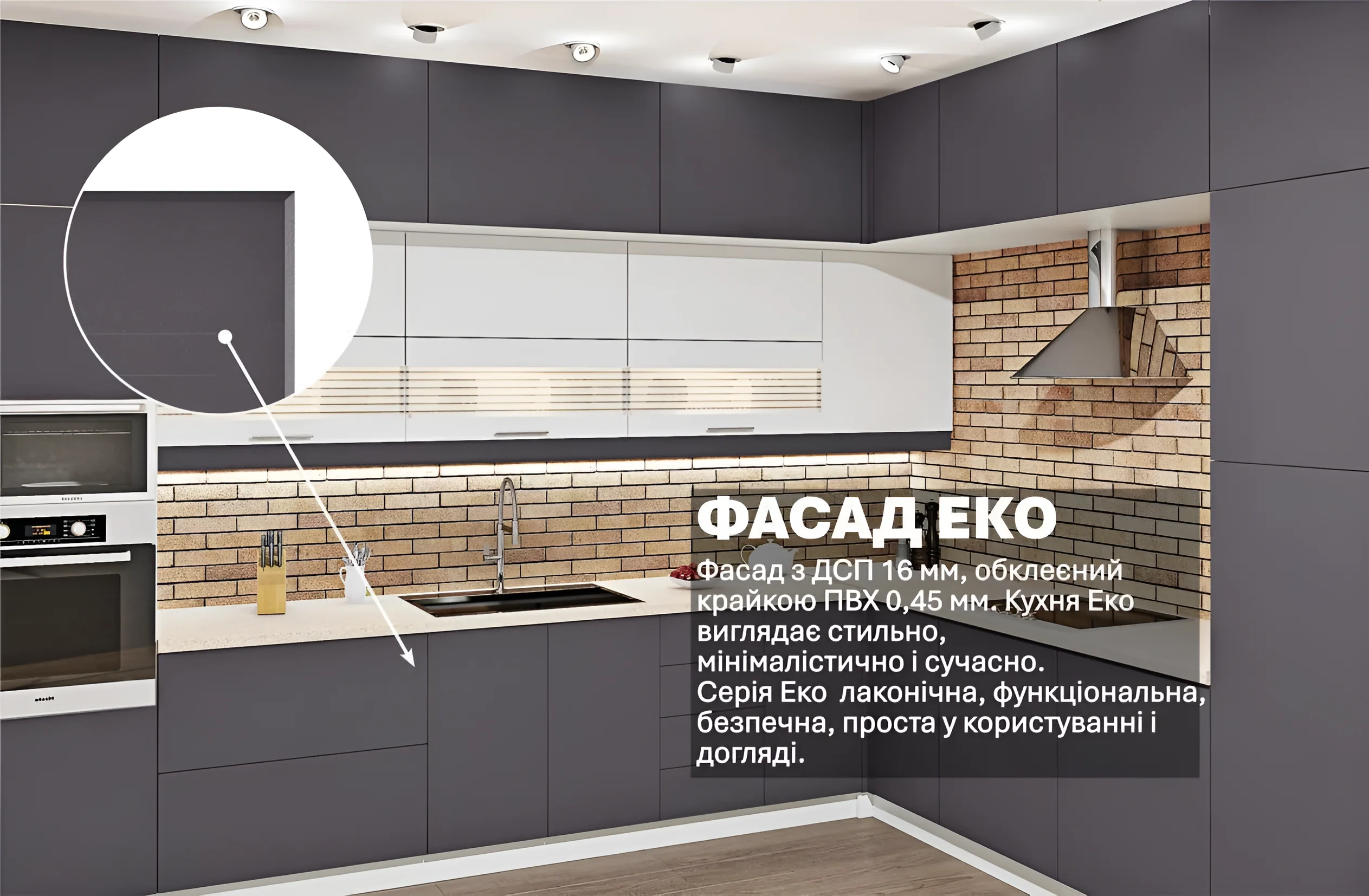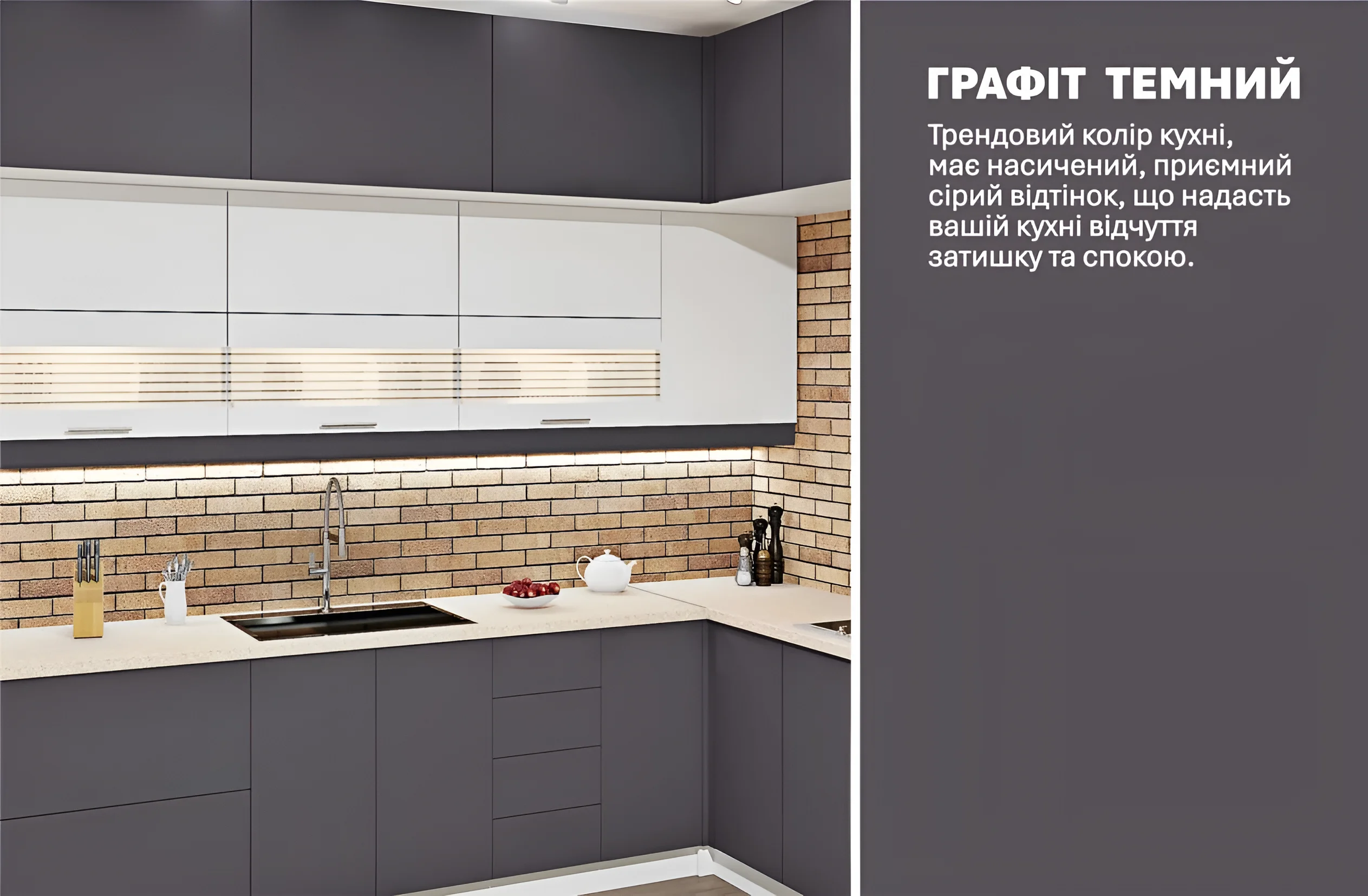 Купить Кухня «Эко» 3600 х 2800 мм угловая Белый, Графит темный в Украине вы можете на сайте MebelTops.com.