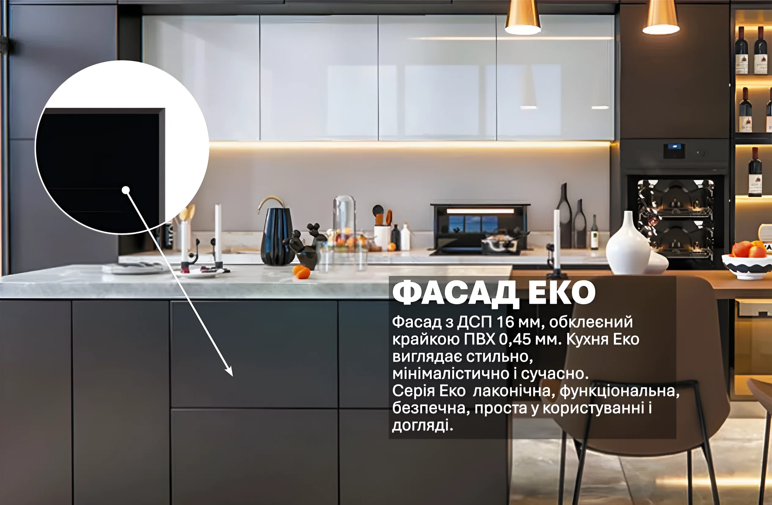 Купить Кухня «Эко» 4.4м прямая с кухонным островом Белый, Черный в Украине вы можете на сайте MebelTops.com.