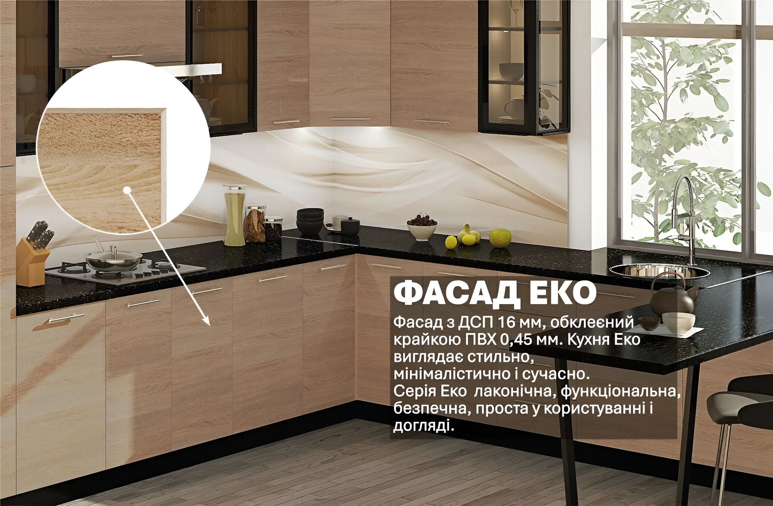 Купить Кухня «Эко» 4000 х 3000 мм прямая П-образная Дуб сонома в Украине вы можете на сайте MebelTops.com.