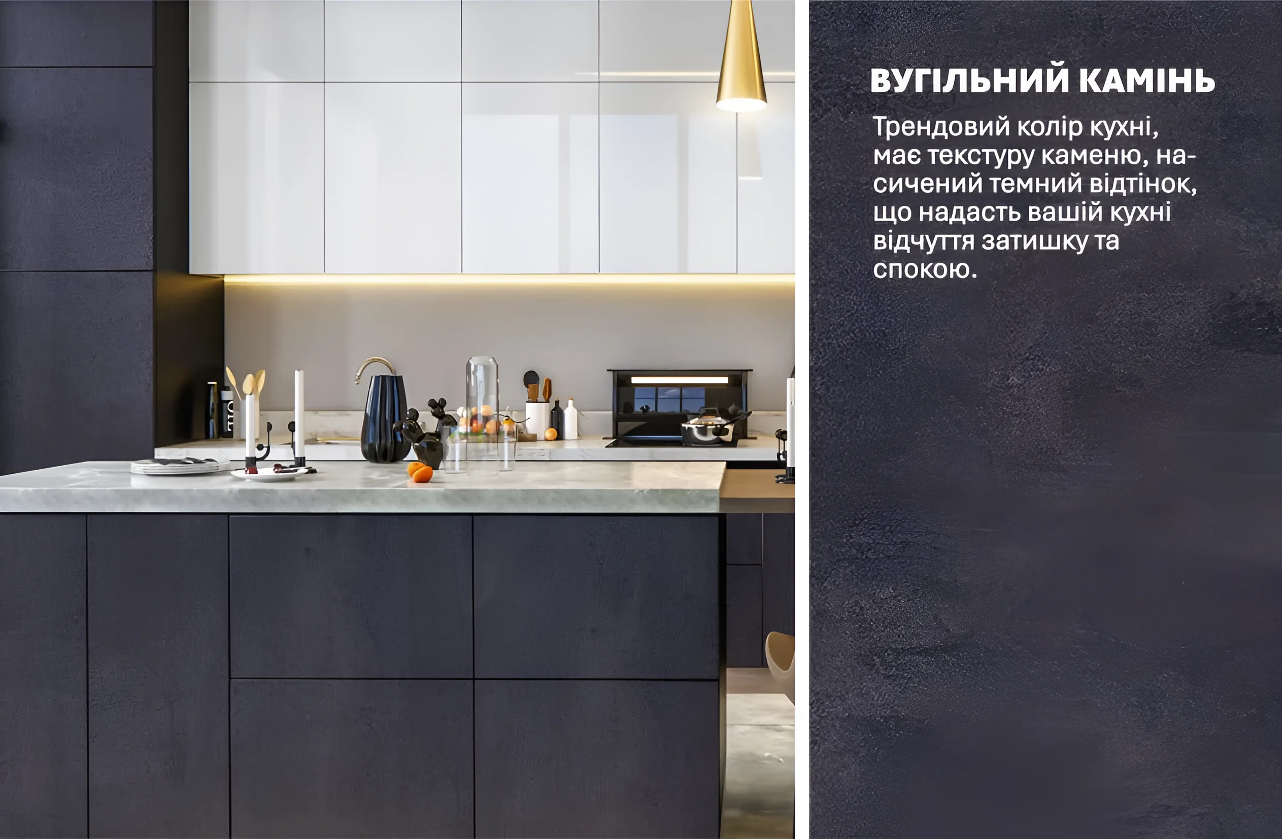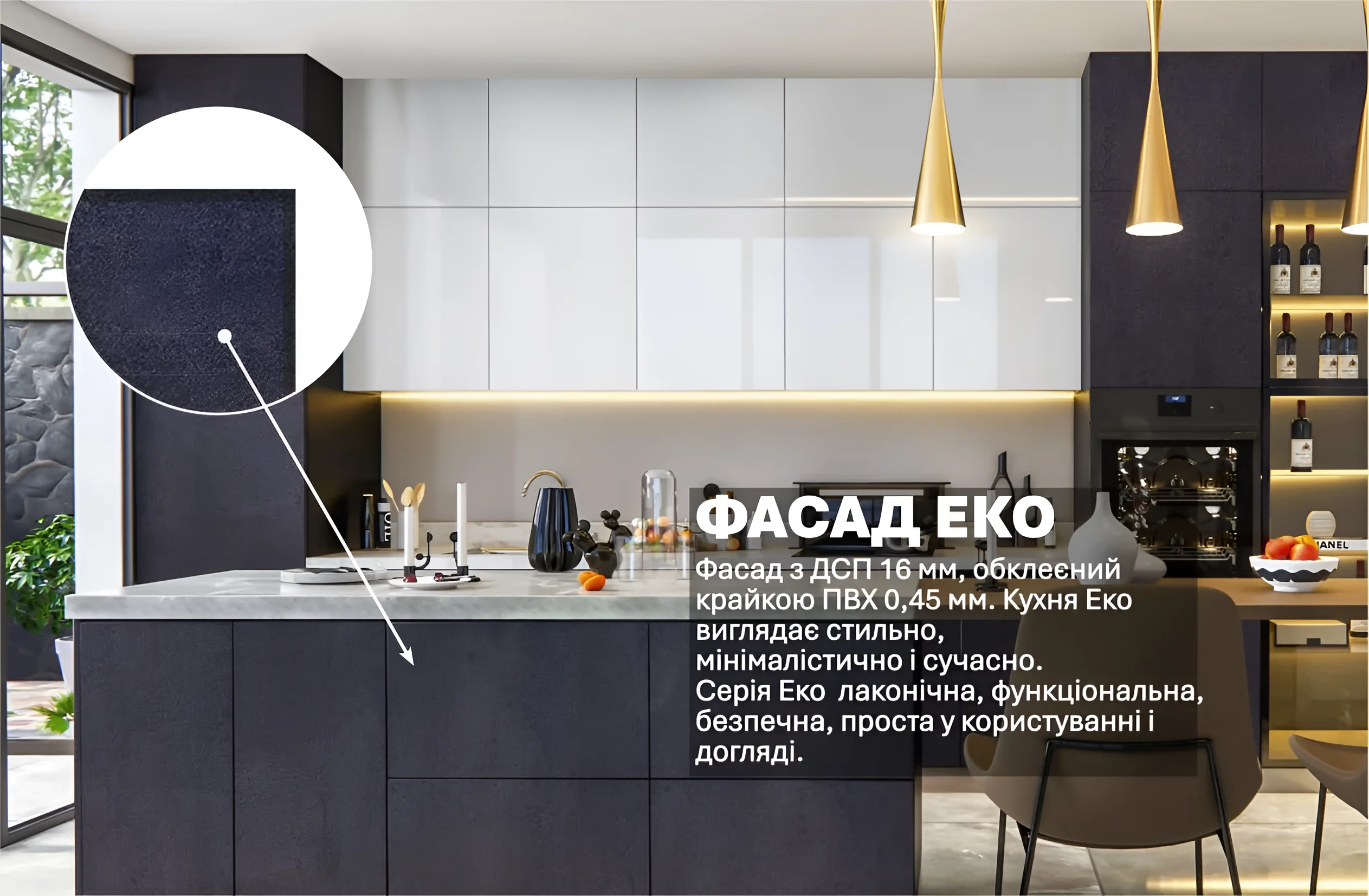 Купить Кухня «Эко» 4,5м прямая с кухонным островом Белый, Угольный камень в Украине вы можете на сайте MebelTops.com.