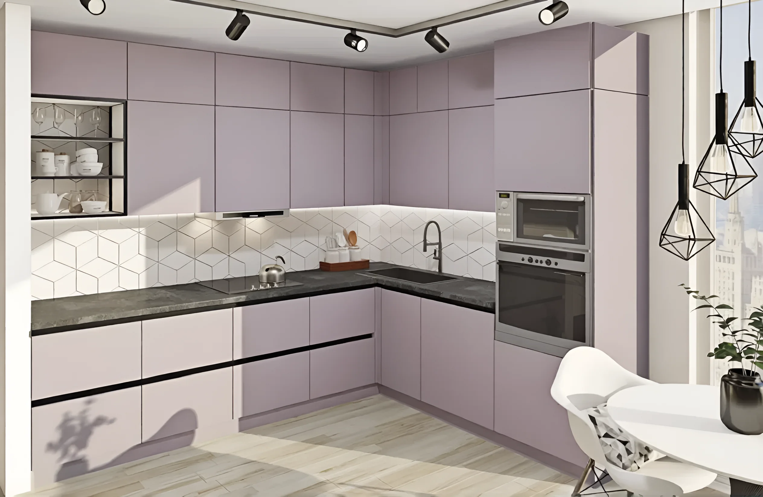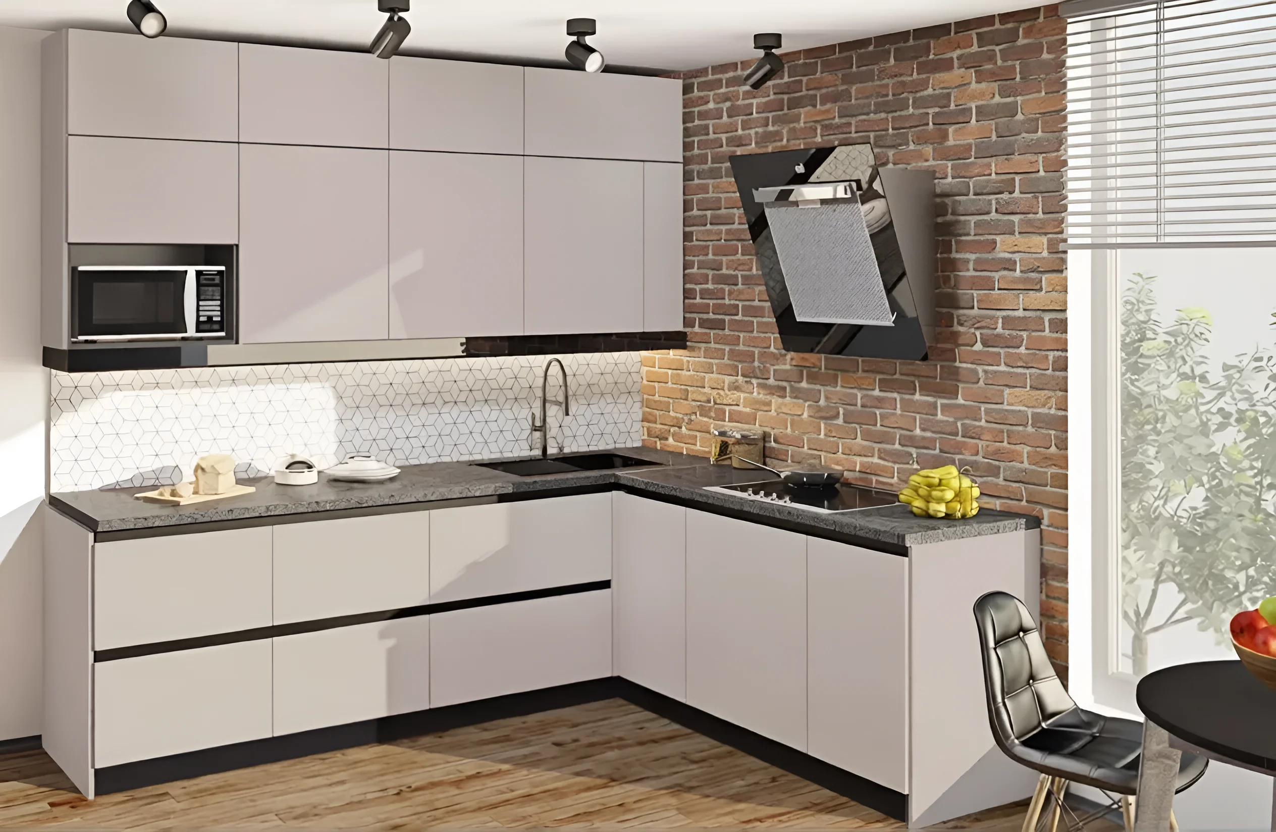 Кухня Gola отличается своей угловой конфигурацией размером 3х2,2 метра, что делает ее исключительно удобной для оптимизации рабочего пространства, особенно в небольших или средних по размеру помещениях. Стиль «Лофт» придает интерьеру особую эстетику, сочетая простоту форм с продуманной функциональностью.