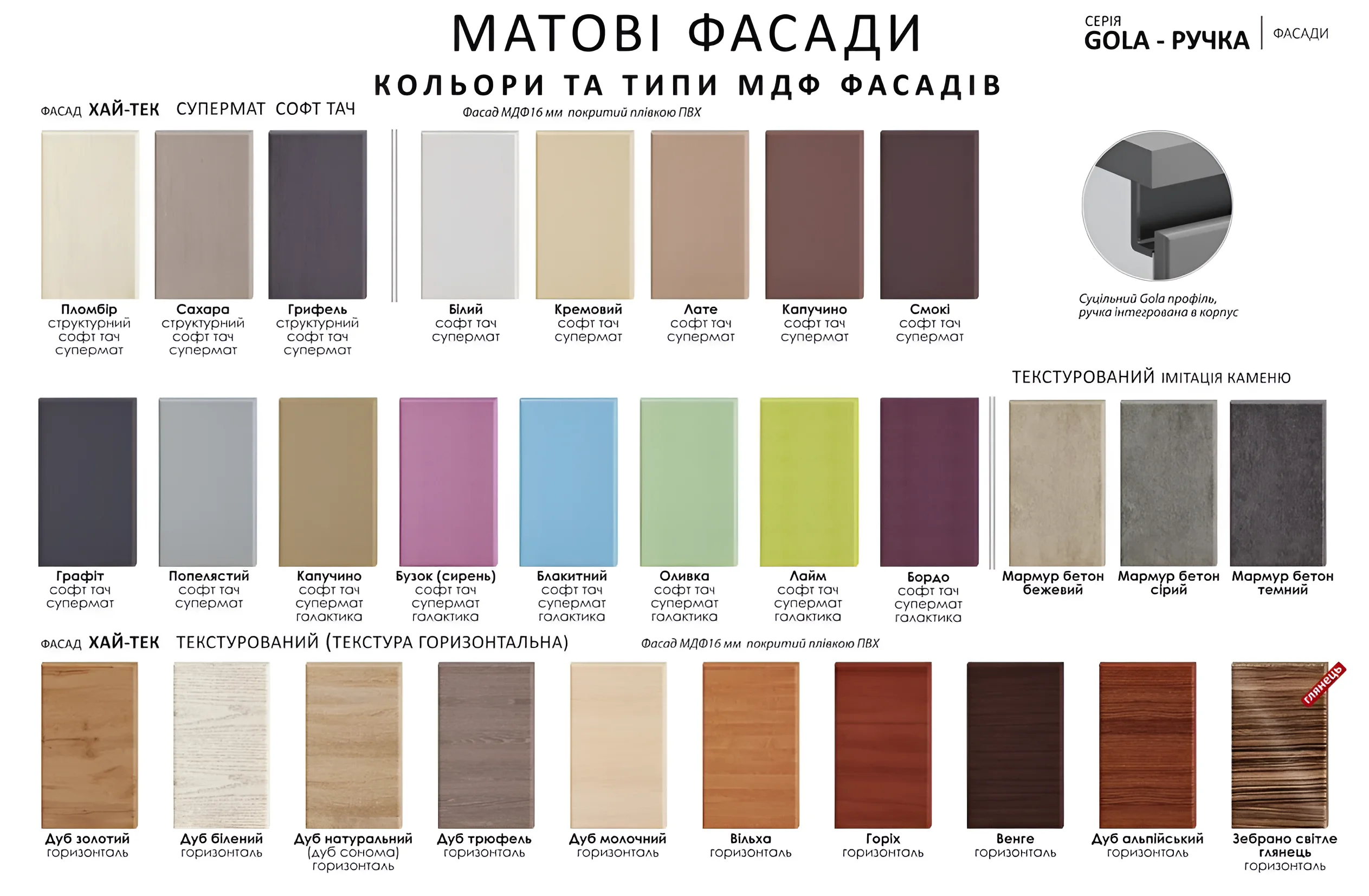 Система открывания Gola ручка – это воплощение минимализма и эргономики. Ручка интегрирована непосредственно в торец фасада, что создает гладкую, бесшовную поверхность, лишенную выступающих элементов. Это не только улучшает внешний вид кухни, но и повышает безопасность, исключая случайные удары о ручки.