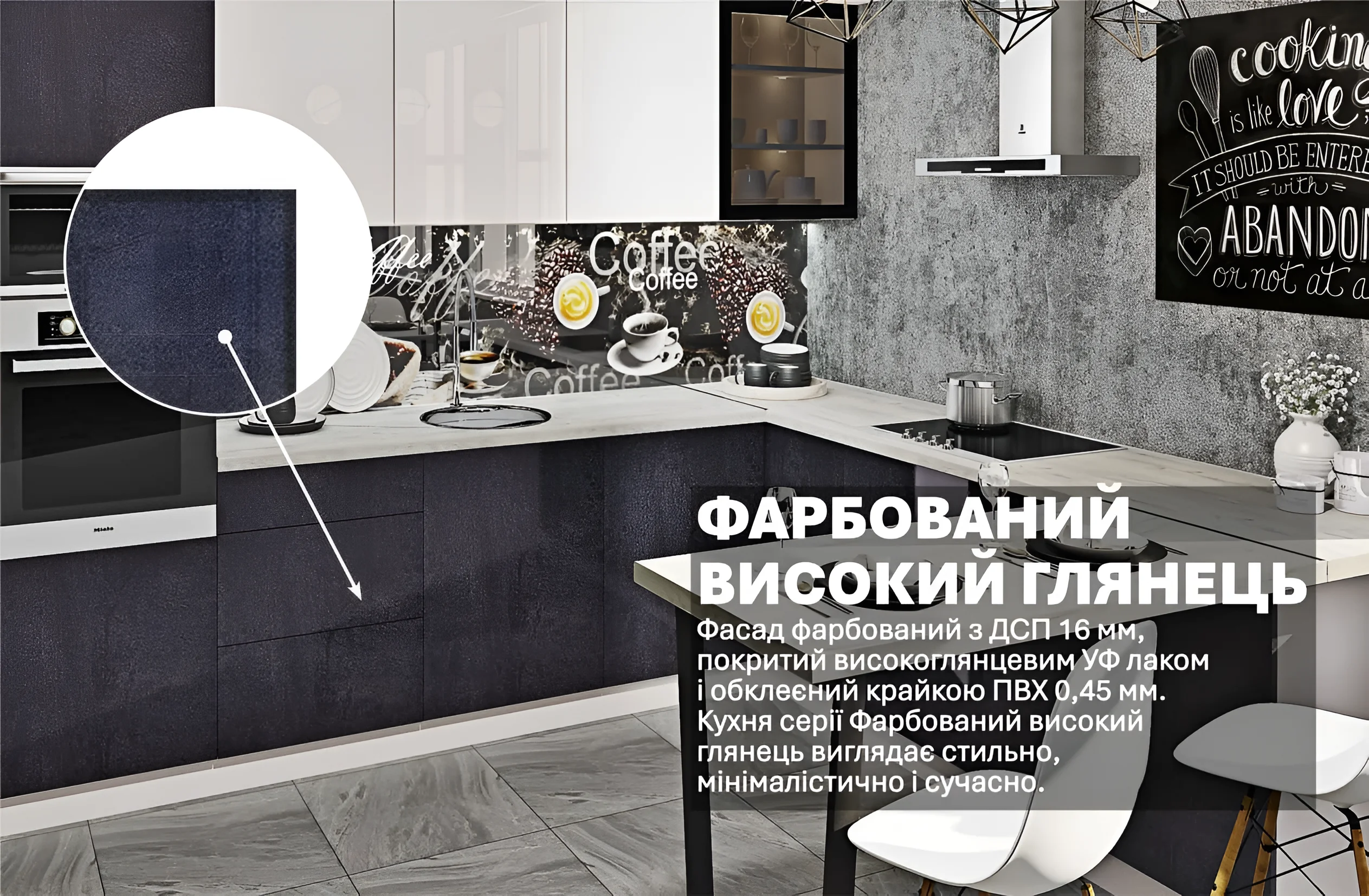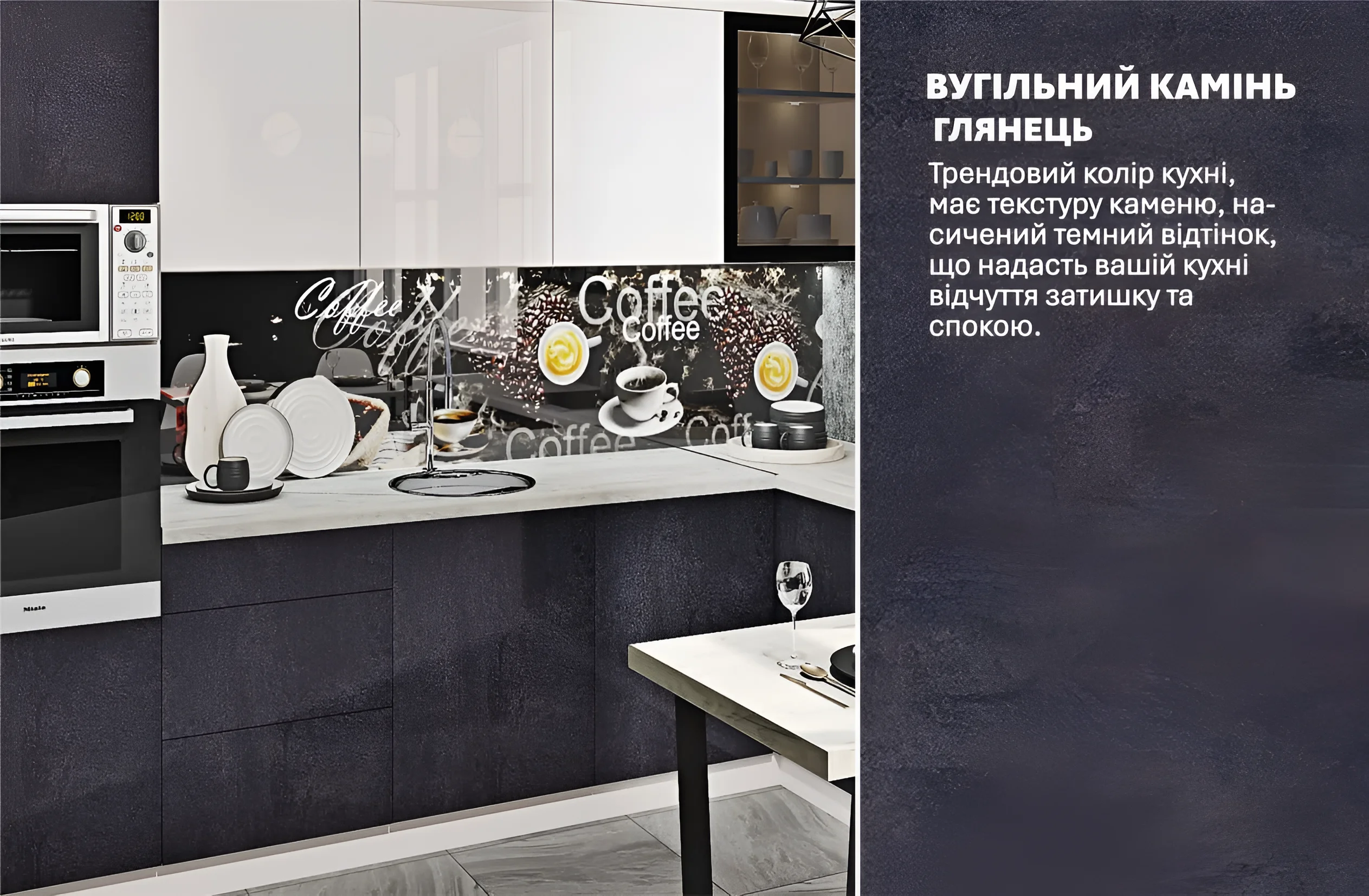 Купить Кухня «Крашеный высокий глянец» 3х2,6м Белый, Угольный камень в Украине вы можете на сайте MebelTops.com.
