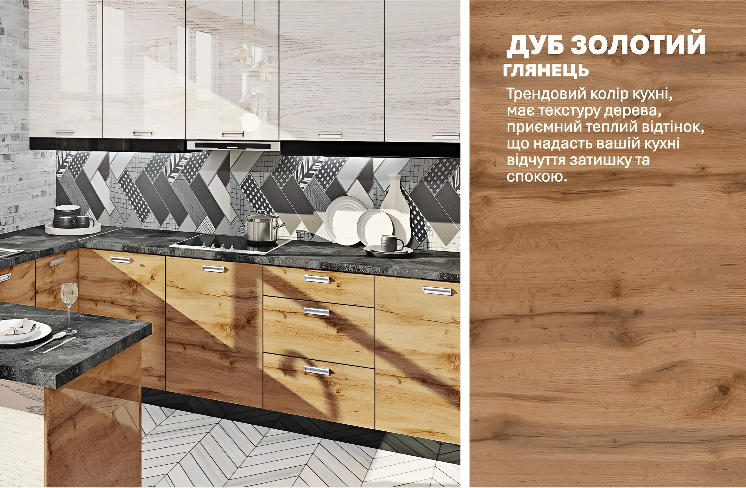 | Цвет фасада кухни | Дуб беленый, Дуб золотой |