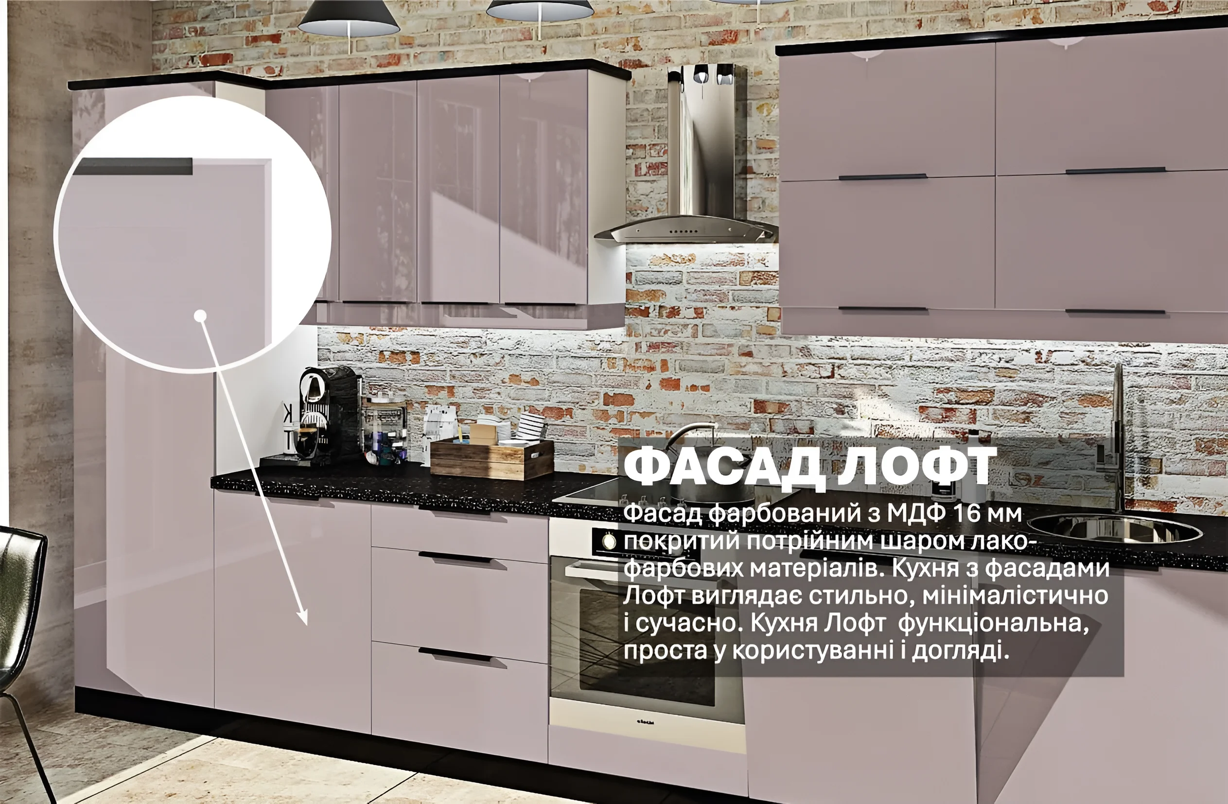 Купить Кухня «Лофт» 3.6 метра крашеный МДФ Бархат бежевый в Украине вы можете на сайте MebelTops.com.