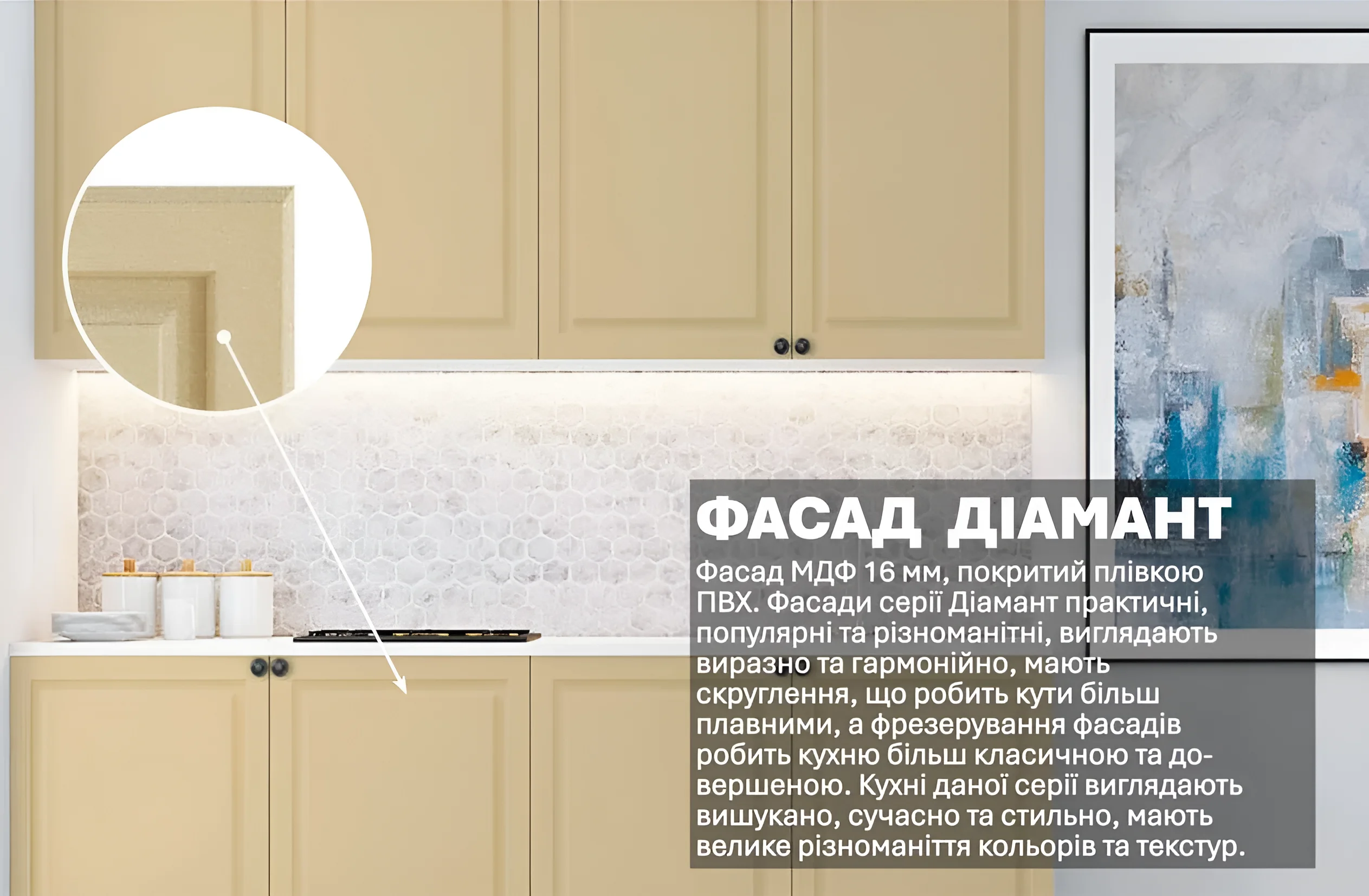 Купить Кухня маленькая «Диамант» 2000м Крем в Украине вы можете на сайте MebelTops.com.
