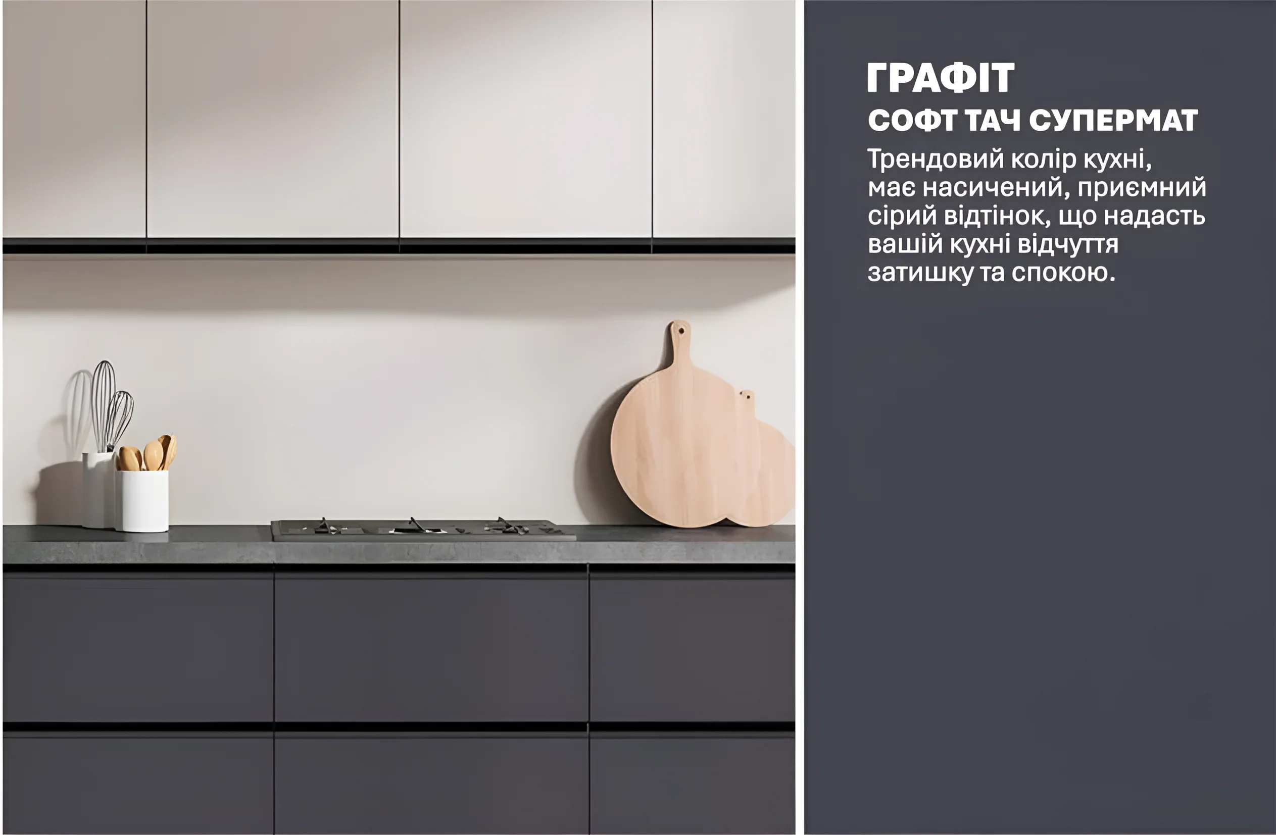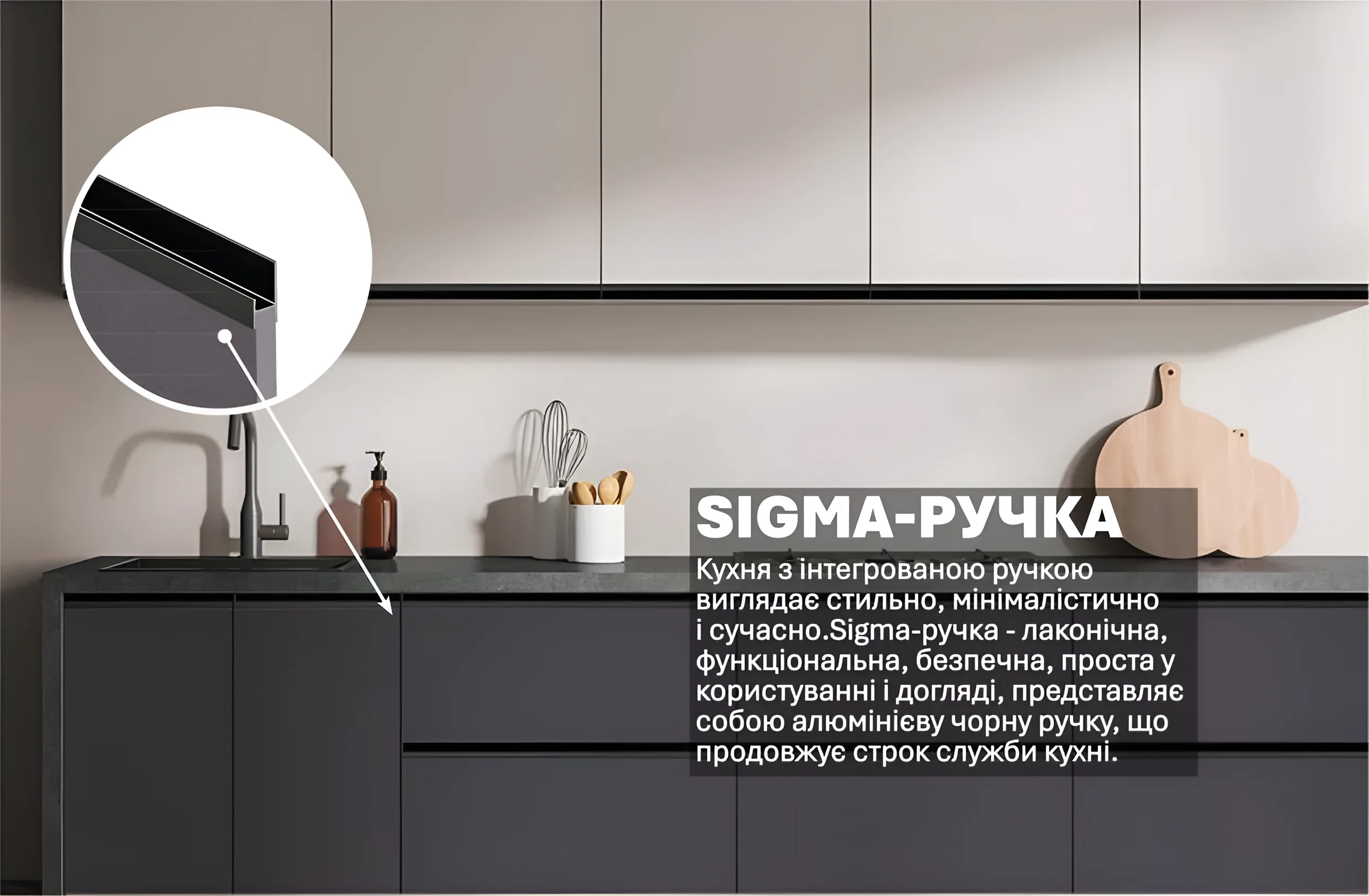 Купить Кухня матовая «Sigma ручка» 2400 мм Белый, Графит в Украине вы можете на сайте MebelTops.com.