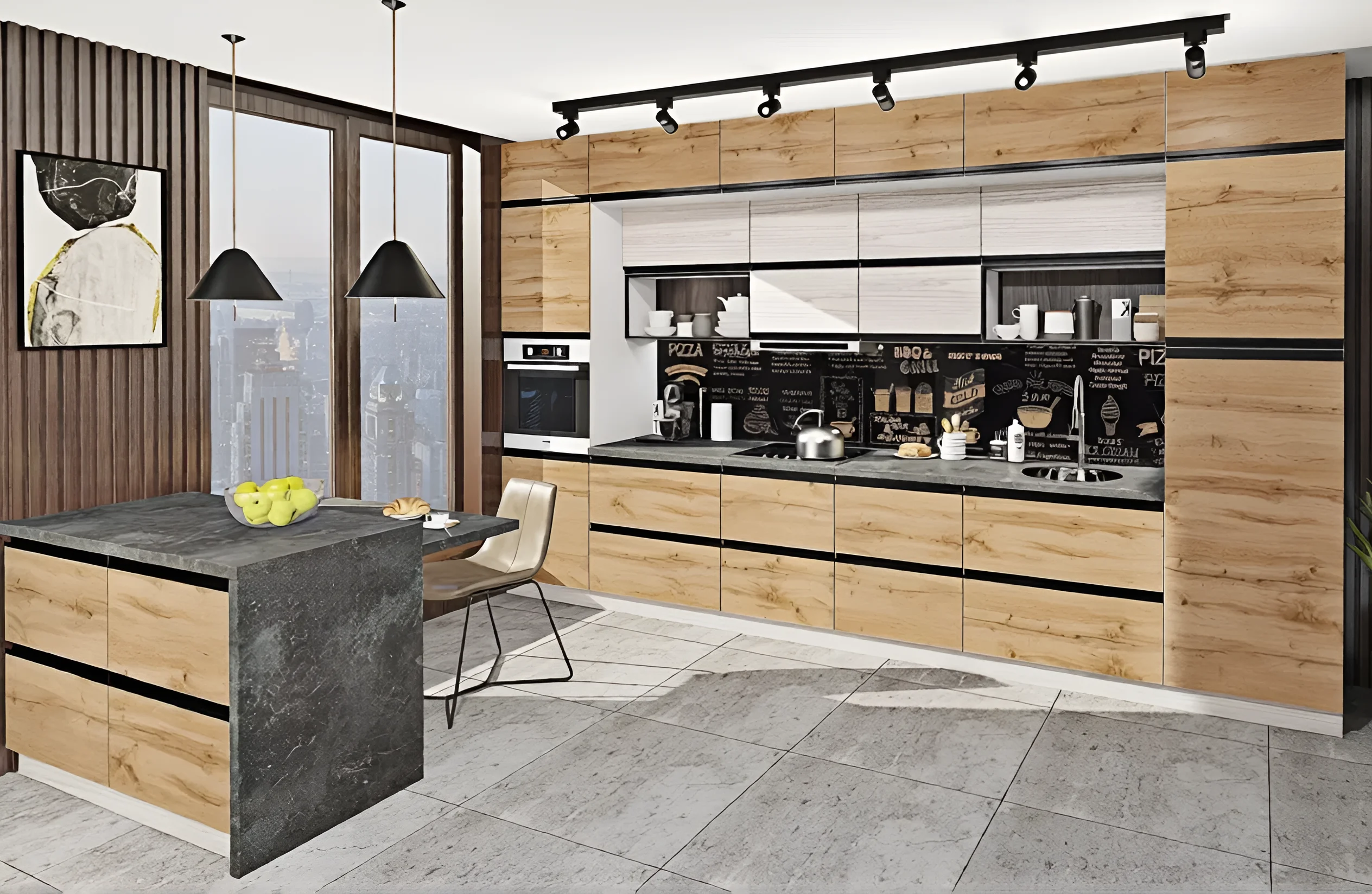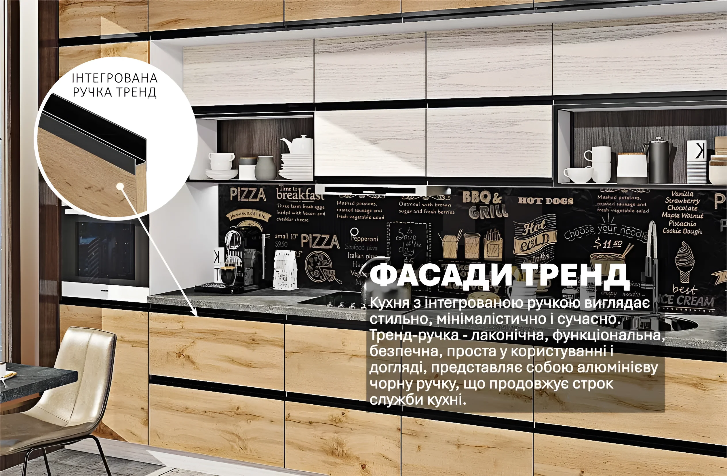 Кухня «Тренд» — это не просто набор шкафов, а тщательно продуманная система, которая обеспечит максимальный комфорт и эффективность использования каждого сантиметра пространства. Благодаря модульной конструкции, вы можете адаптировать кухню под свои индивидуальные потребности, создавая уникальный и практичный интерьер.