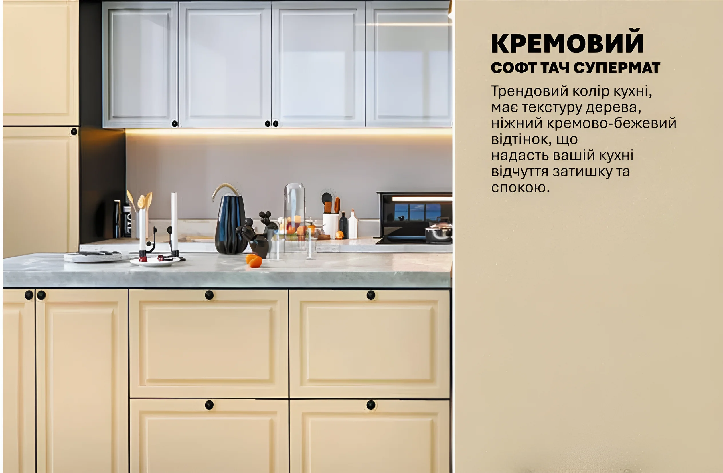 Купить Кухня на заказ «Диамант» 4.4м с островом Белый, Крем в Украине вы можете на сайте MebelTops.com.