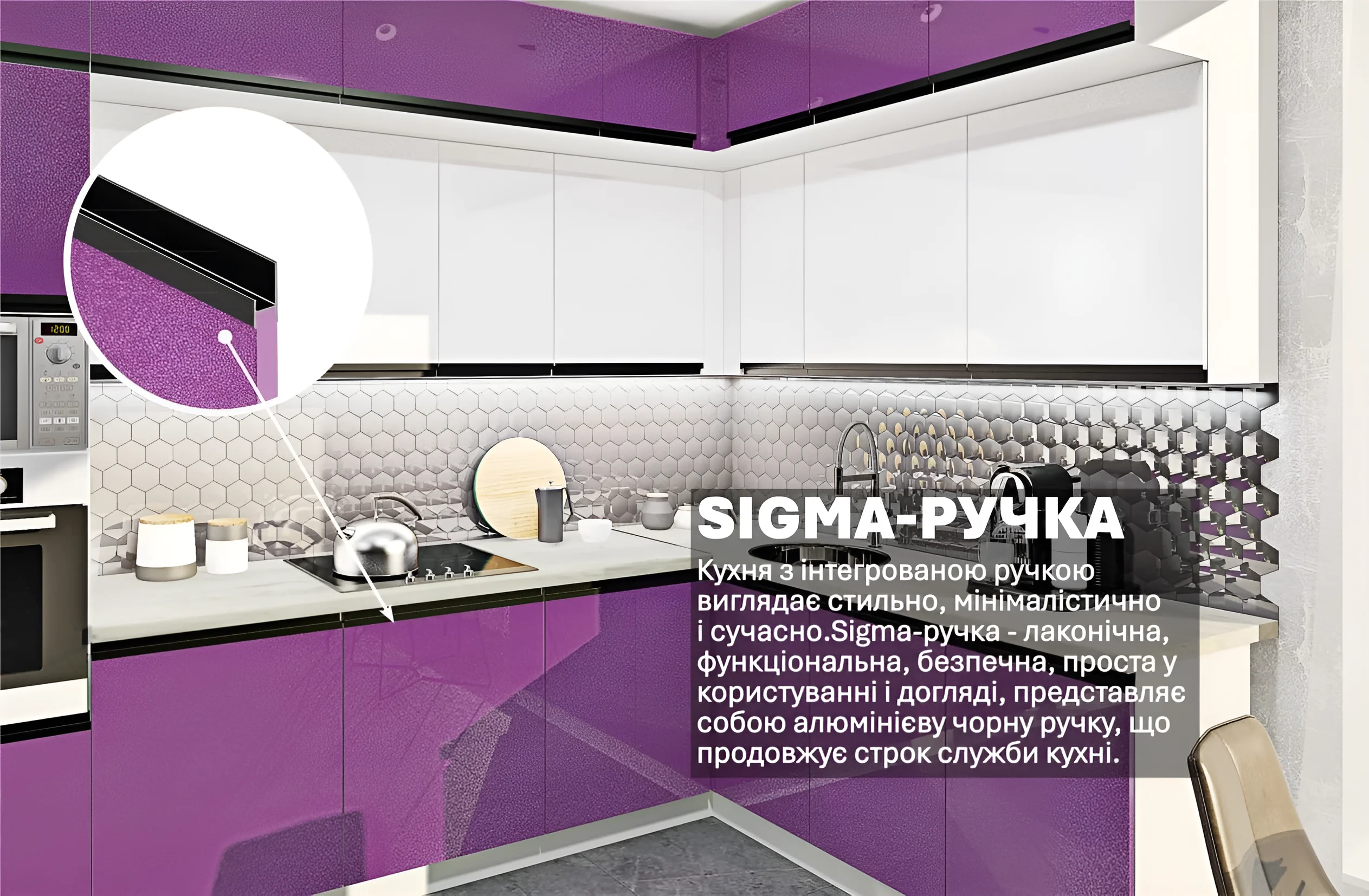 Купить Кухня на заказ «Sigma ручка» 3х1.9м угловая Белый, Сирень в Украине вы можете на сайте MebelTops.com.