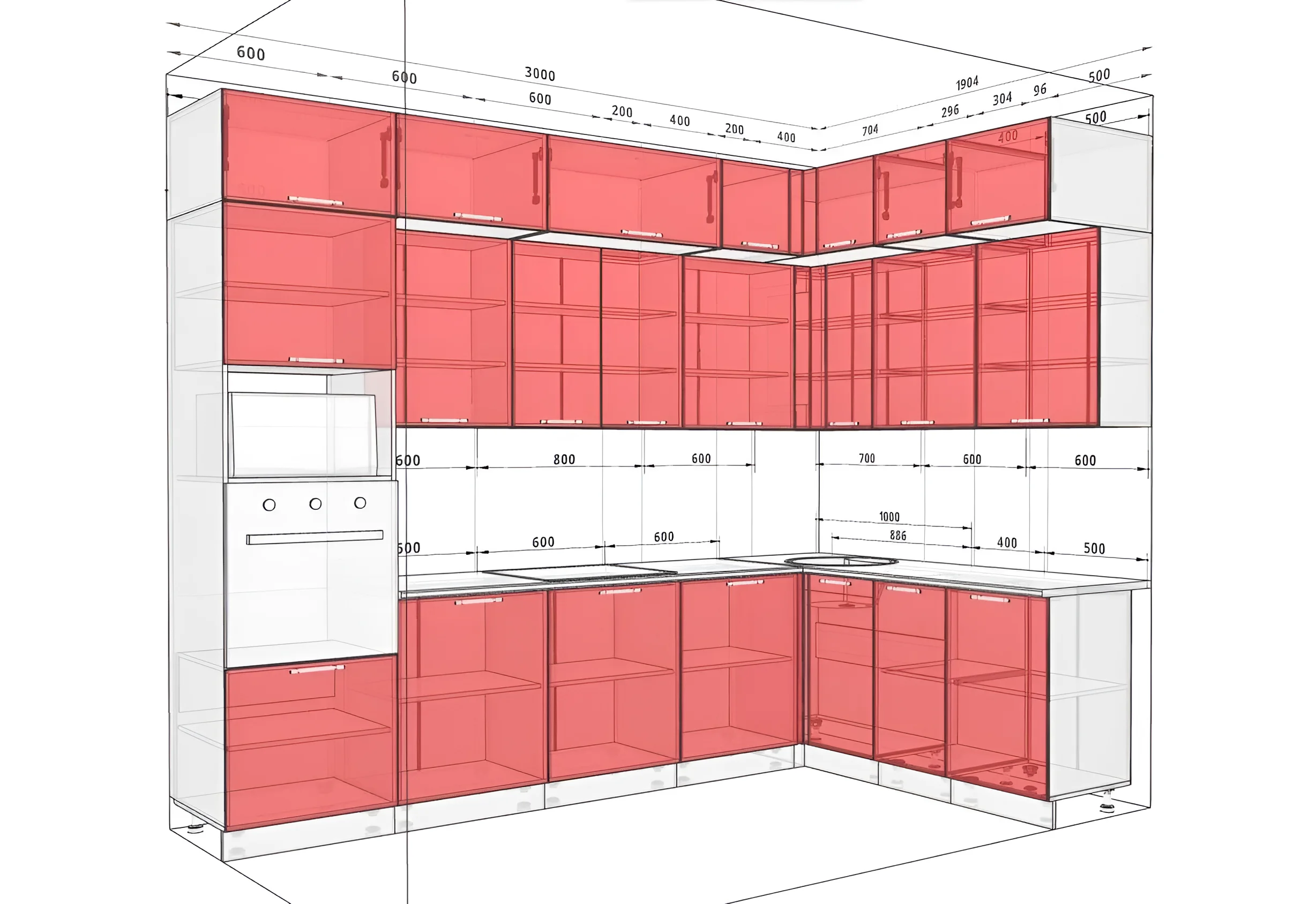 Каждый элемент угловой кухни «Sigma ручка» спроектирован для обеспечения максимального комфорта и удобства в процессе приготовления пищи. Глубина нижних тумб составляет «стандартные» 450 мм, что является оптимальным решением для размещения встроенной бытовой техники и удобного доступа к содержимому. Столешница, глубиной «стандартные» 600 мм, предоставляет достаточно места для комфортной рабочей поверхности, на которой можно разместить мелкую бытовую технику, разделочные доски и ингредиенты. Такое сочетание глубин позволяет создать функциональное и просторное рабочее место, где все находится под рукой, но при этом не загромождает проход.
