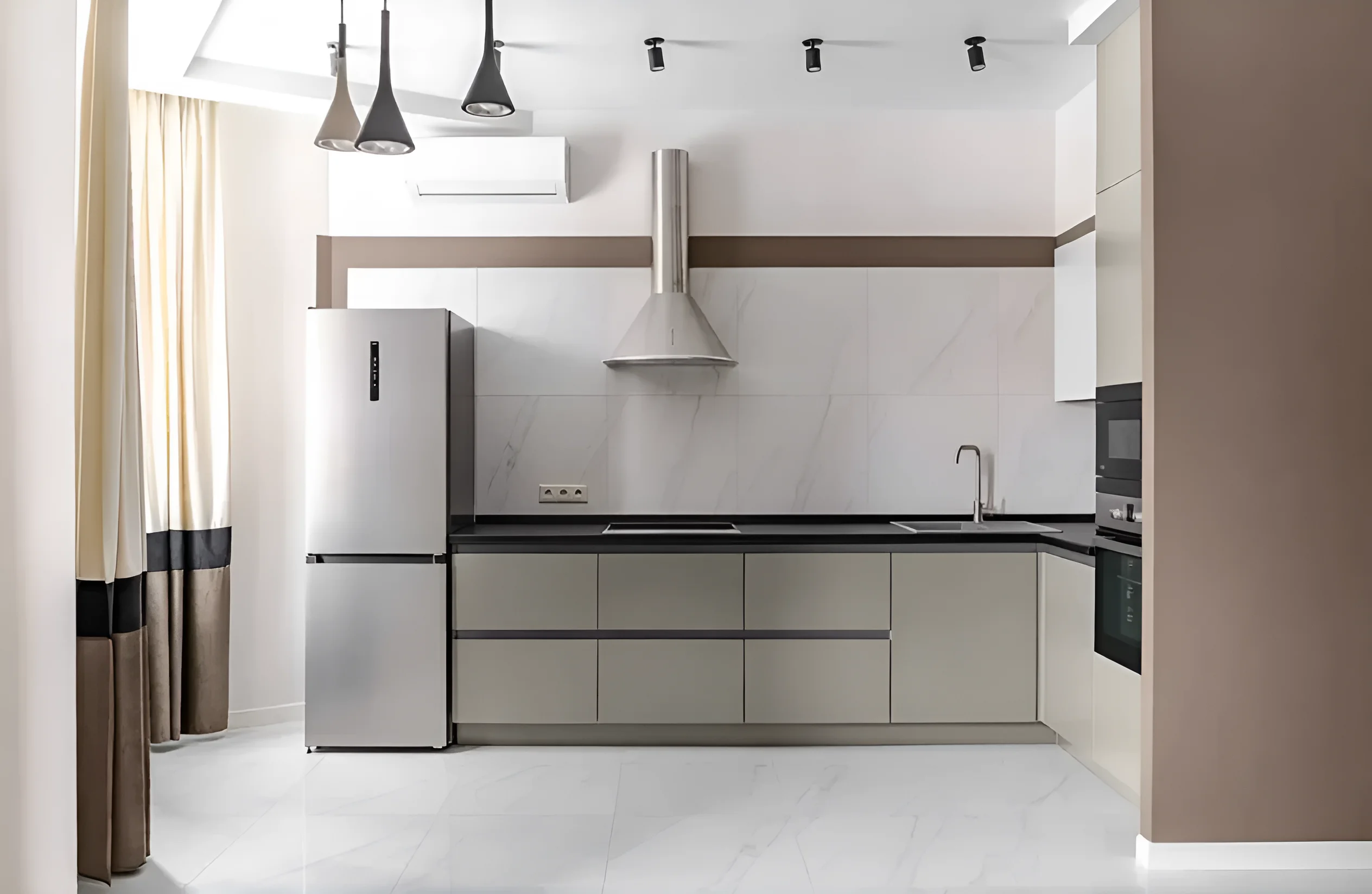 Кухня «Gola ручка» – это воплощение современных тенденций в мебельном дизайне. Отличительной особенностью данной серии является интегрированная система ручек Gola, которая создает эффект монолитных фасадов без выступающих элементов. Это не только придает кухне невероятно стильный и лаконичный вид, но и значительно упрощает уход за поверхностями, предотвращая скопление грязи. Цвет фасадов Капучино – это универсальный и очень уютный оттенок, который легко комбинируется с различными элементами декора, создавая теплую и располагающую к общению атмосферу. Фасады серии «Эко» выполнены из ДСП с МДФ рамкой и ламинированной вставкой, что гарантирует их долговечность, устойчивость к влаге и механическим повреждениям, а также легкость в уходе. Покрытие фасадов с МДФ рамки и вставки из ламинированной ДСП придает им особую прочность и эстетичный вид.