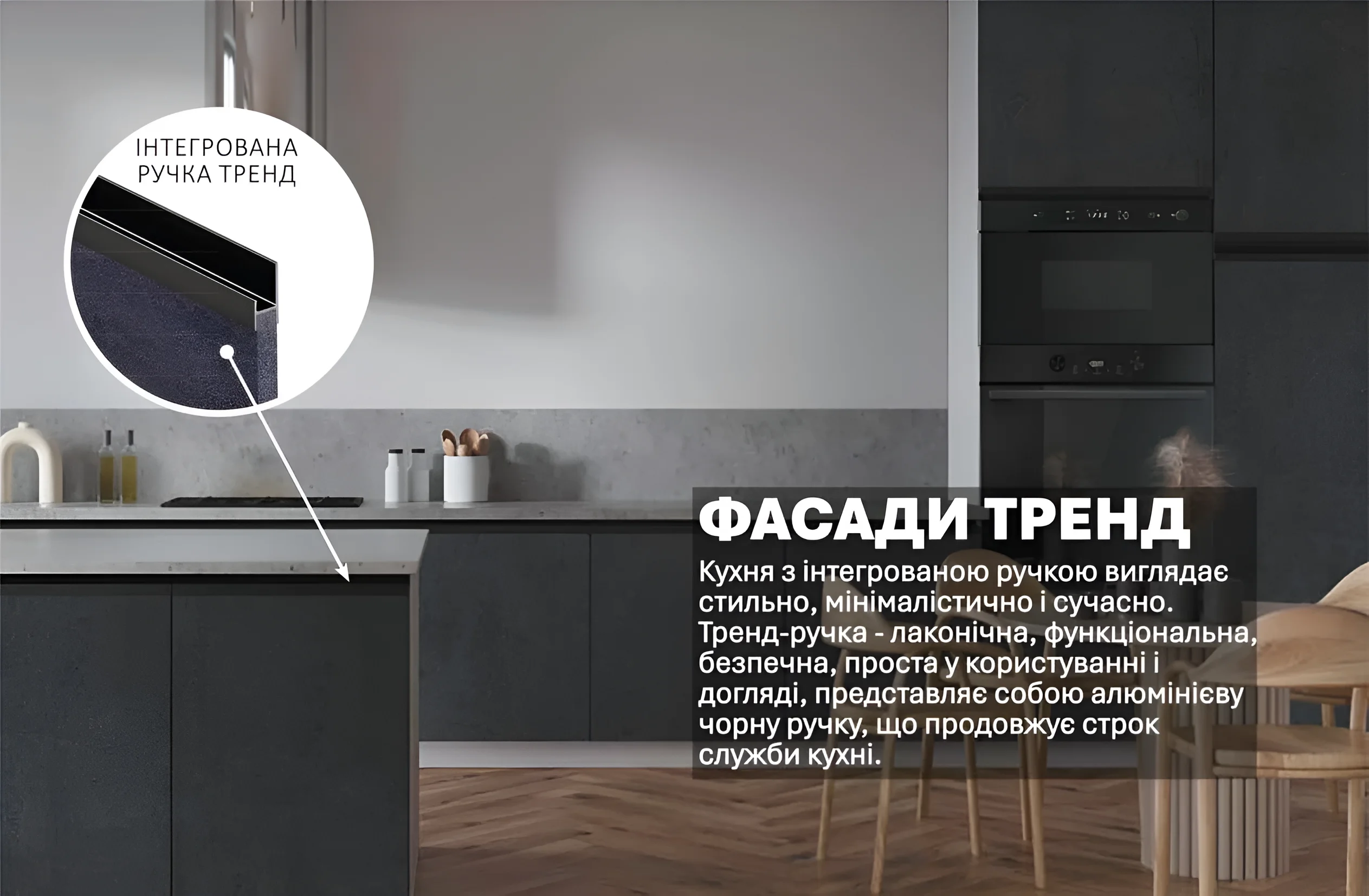 Купить Кухня одноуровневая «Тренд» 5300мм с островом Угольный камень в Украине вы можете на сайте MebelTops.com.