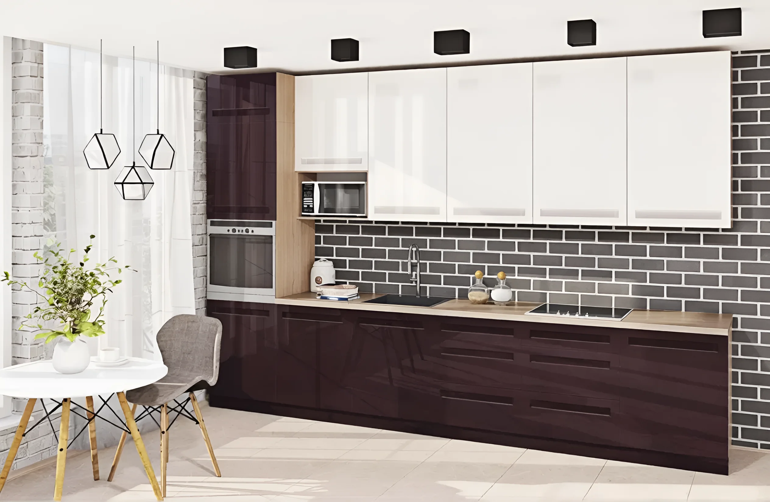 Одной из ключевых особенностей кухни «Альфа ручка» являются ее фасады. Они выполнены из высококачественного МДФ, материала, который славится своей прочностью, долговечностью и устойчивостью к влаге и перепадам температур. Фасады покрыты крашеным глянцевым слоем, что придает им роскошный блеск, облегчает уход и делает кухню более светлой и просторной. Цветовое решение – Белый и Шоколад – это классика, которая всегда остается актуальной, привнося в интерьер теплоту и современность одновременно. Корпус кухни изготовлен из ДСП, надежного и проверенного материала, обеспечивающего прочность и стабильность конструкции на долгие годы. Использование таких материалов гарантирует, что ваша кухня будет радовать вас своим внешним видом и функциональностью без потери качества.